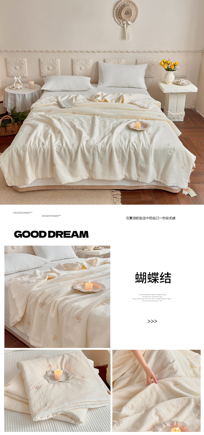 木楌家居 2026新款全棉皱皱纱刺绣款夏被床盖四件套 组合图仅供参考不可下单