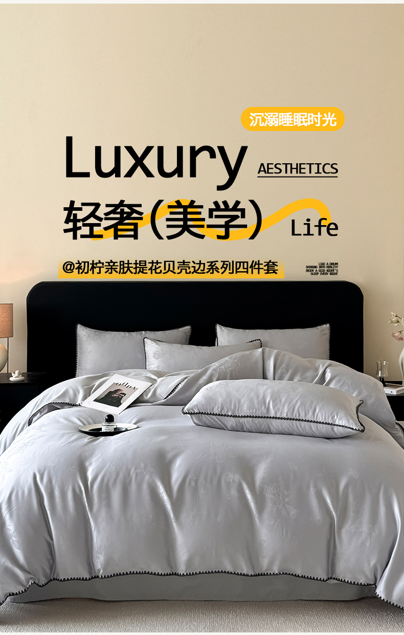 当前位置: 91家纺网 > 商品网购 > 床品套件 > 四件套 > 其它四件套 > 置顶家纺 2026新款亲肤提花贝壳边四件套-初柠 初柠-灰色