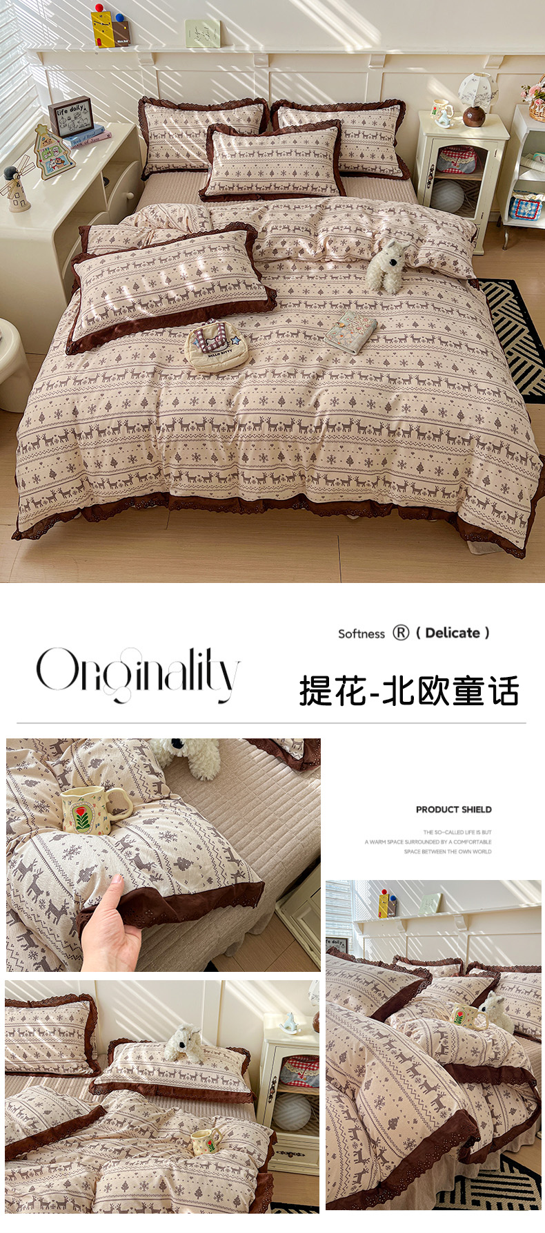 (总)富米莱(原臻工厂) 2026新款法式赫本风大花边A类古法仿棉云感纱床盖床裙四件套,豹纹猫咪,狗狗家族,花间谣,花影浅吟,花语玫瑰,槿上花开,卡布奇诺,兰絮语,漫野,恰恰狗,午后时光,雾蓝小熊,小玫瑰,星河入梦,知否