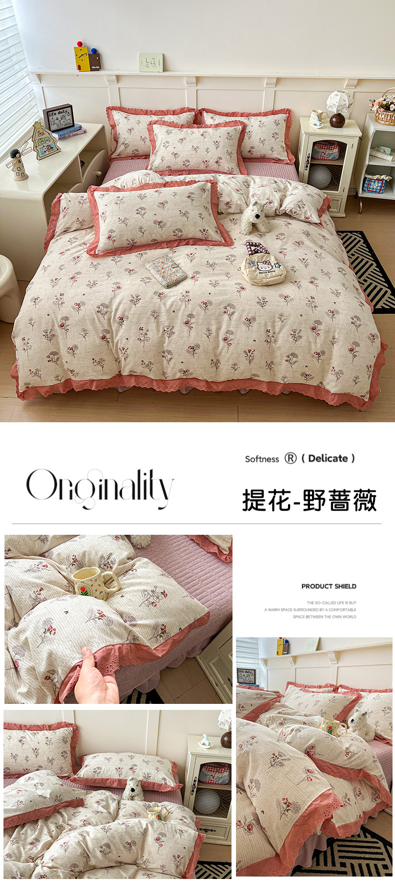 (总)富米莱(原臻工厂) 2026新款韩系古法韩国水洗棉云棉大布袋法式浪漫大花边床盖夏凉被床盖四件套,爆了樱桃,点点黑,点点红,浮世绘,花满满,浪漫玫瑰,马上有钱,玛奇朵,猫猫粉,猫猫蓝,莫松染,暮山紫,奶油兔,砚余墨,知春绿,紫兔兔