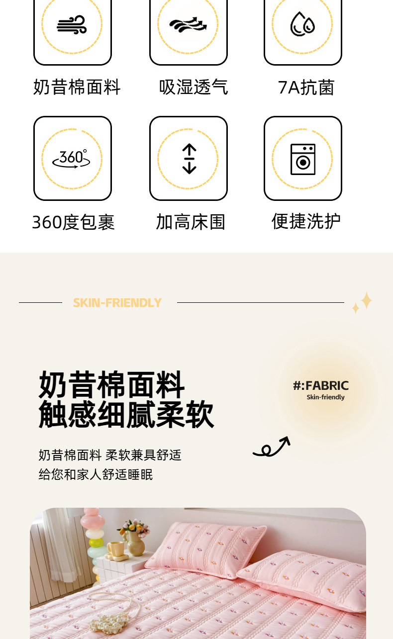 (总)尊康家纺(原磊科) 2026新款奶昔棉抗菌夹棉床裙款床笠-花语系列,花语-薄荷绿,花语-绅士灰,花语-天空蓝,花语-香槟,花语-粉玉,花语-米白