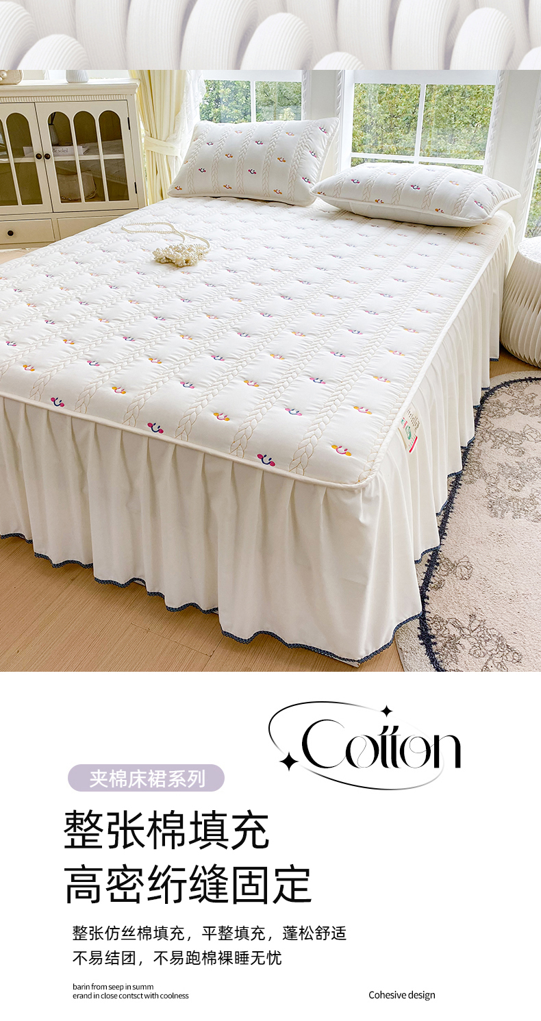(总)尊康家纺(原磊科) 2026新款奶昔棉抗菌夹棉床裙款床笠-花语系列,花语-薄荷绿,花语-绅士灰,花语-天空蓝,花语-香槟,花语-粉玉,花语-米白