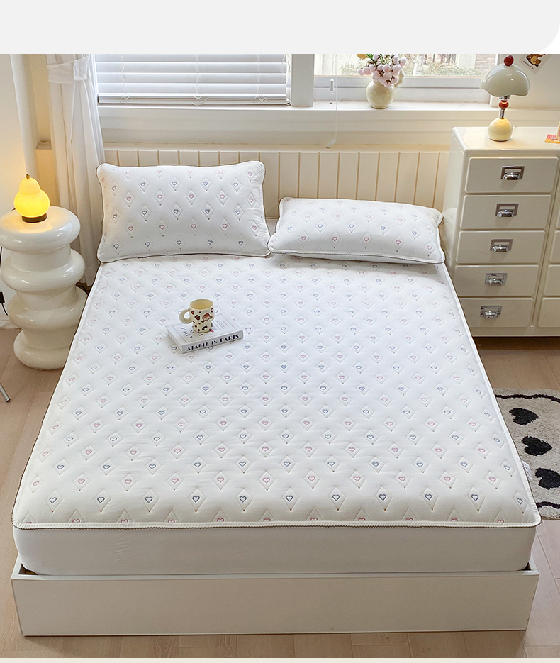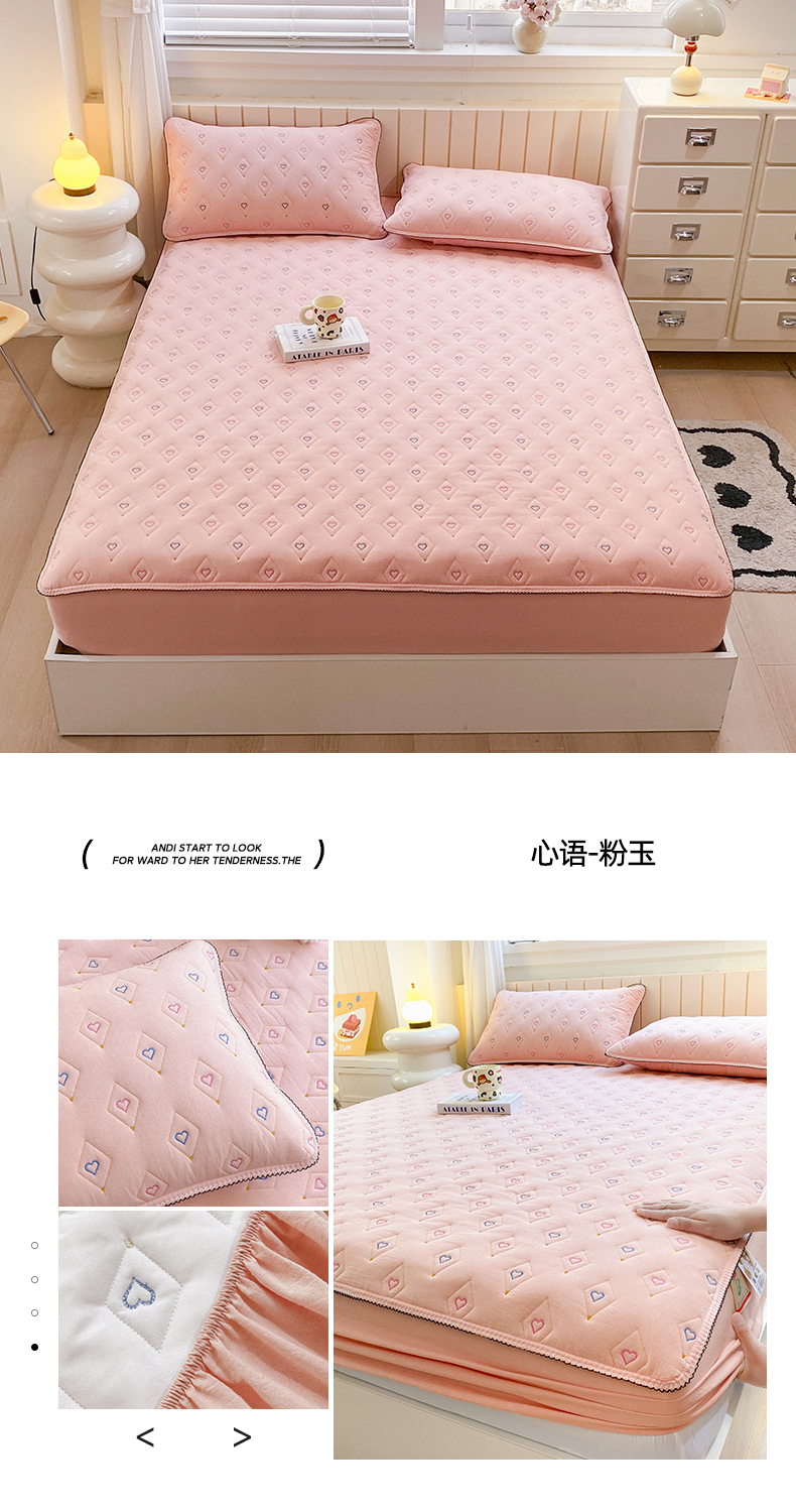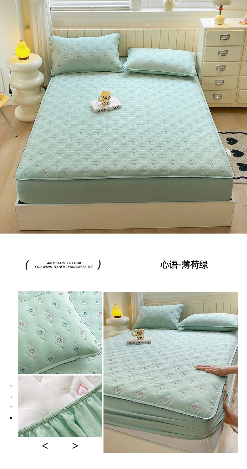 (总)尊康家纺(原磊科) 2024新款全棉色织夹棉大豆纤维床笠心相印系列,心相印-翠绿,心相印-豆沙,心相印-粉玉,心相印-兰青年,心相印-牛仔兰,心相印-朴白,心相印-清新灰,心相印-绅士灰