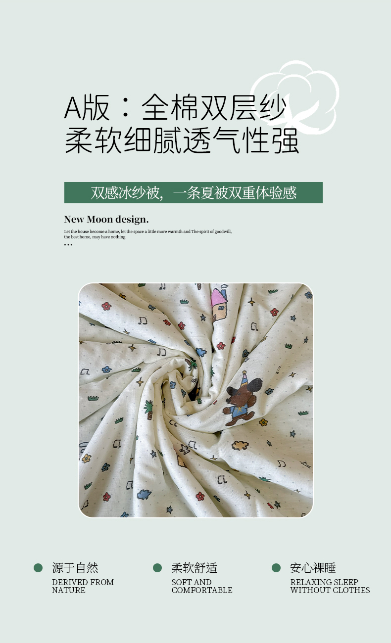 商品名称:兜米家居 2026春夏新款小红书热销款有氧全棉纯棉双层纱双感冰纱被夏凉被被子被芯 音乐小狗