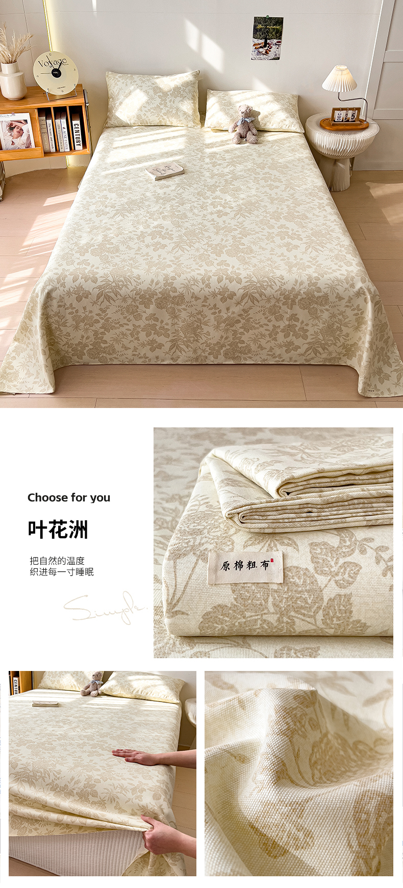 芃成家纺 2026新款老粗布单床单 叶花洲