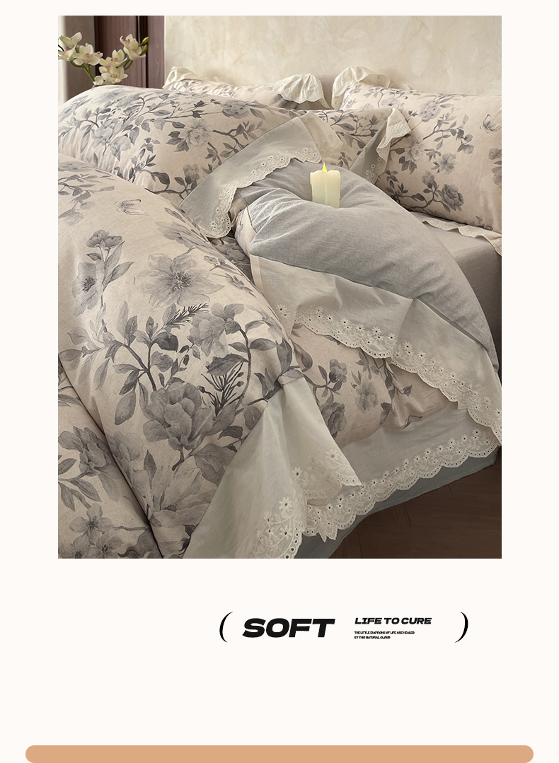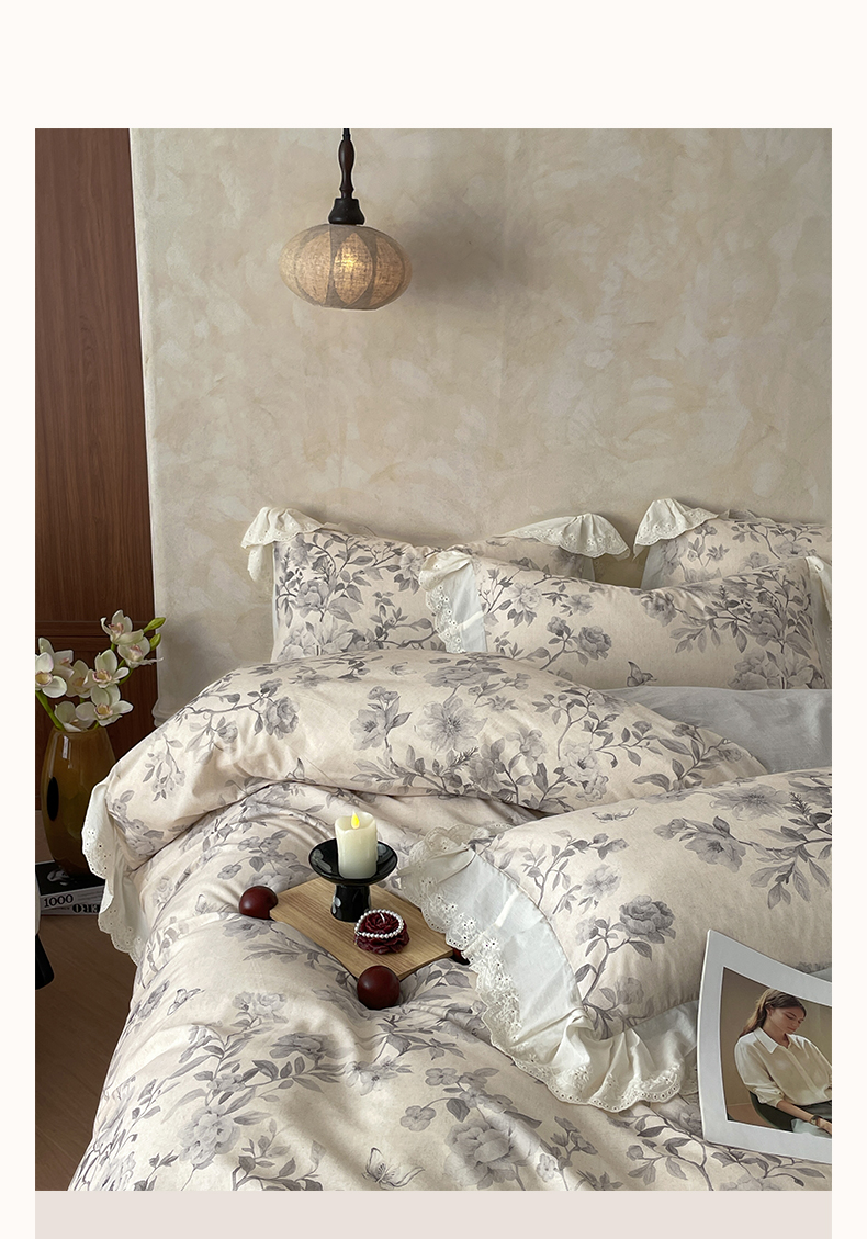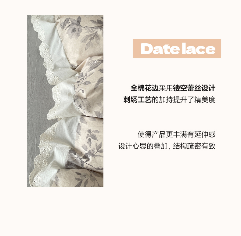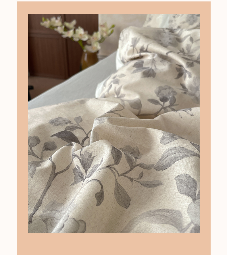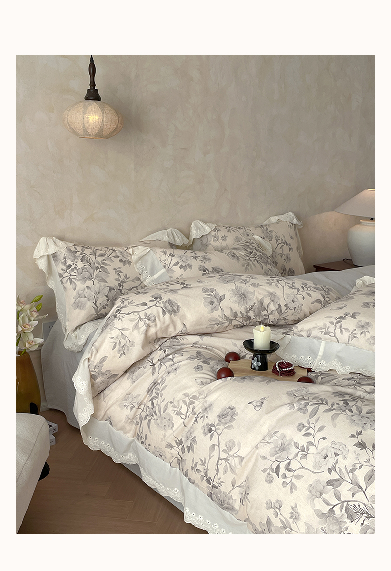 当前位置: 91家纺网 > 商品网购 > 床品套件 > 四件套 > 其它四件套 > 莱登卡奴 2026新款A类棉麻数码印花25%麻75%棉法式复古花边四件套 风吟花叙蓝