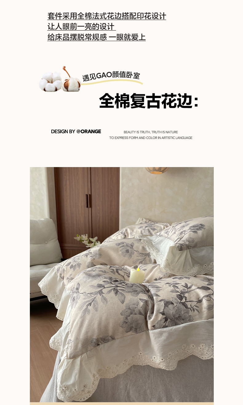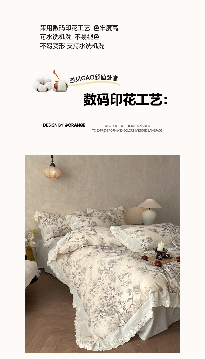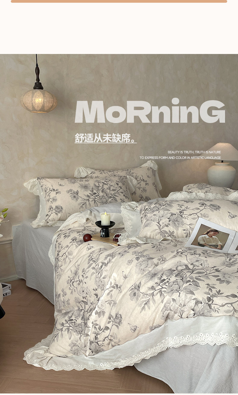 当前位置: 91家纺网 > 商品网购 > 床品套件 > 四件套 > 其它四件套 > 莱登卡奴 2026新款A类棉麻数码印花25%麻75%棉法式复古花边四件套 风吟花叙蓝