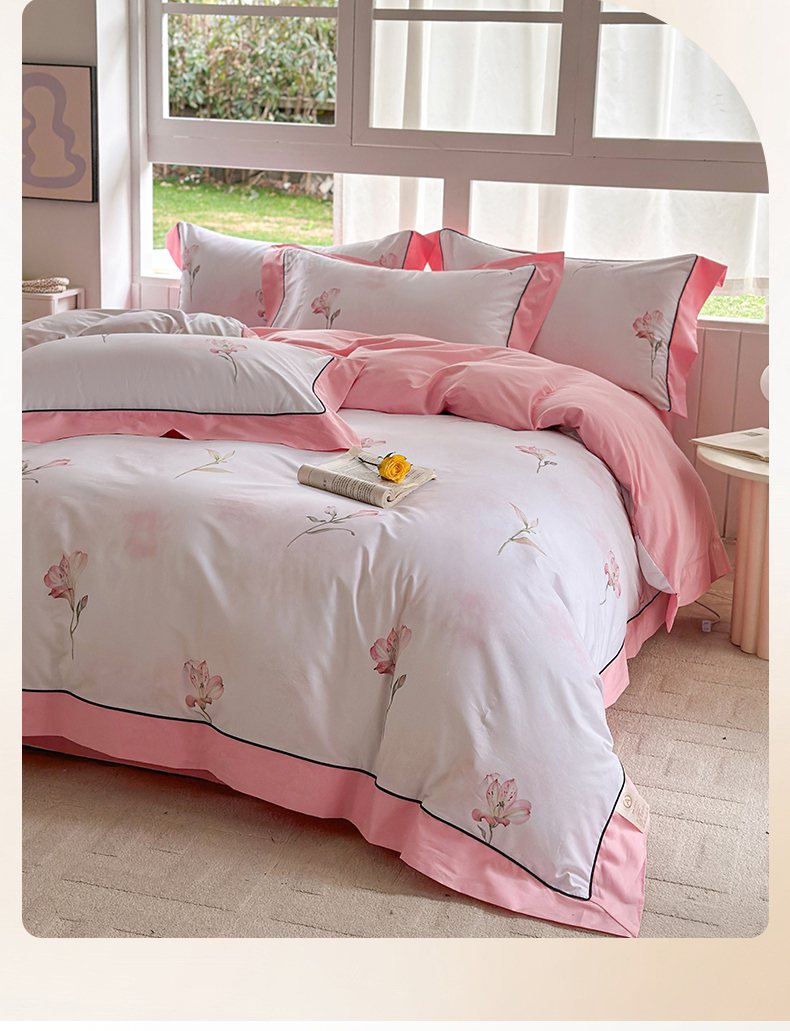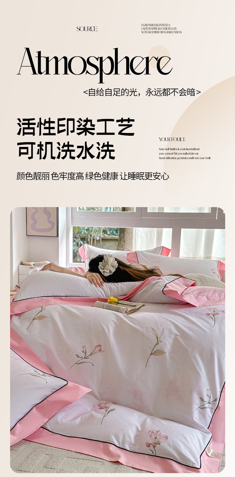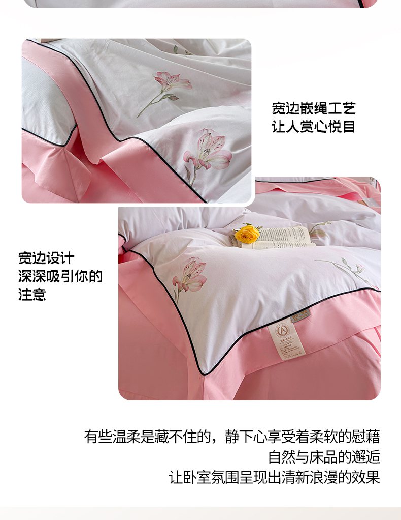 当前位置: 91家纺网 > 商品网购 > 床品套件 > 四件套 > 全棉普通四件套 > 7V 2026新款嵌绳宽边纯棉四件套13376全棉小清新喷气宽幅长绒棉被套床单床笠套件 一见倾心