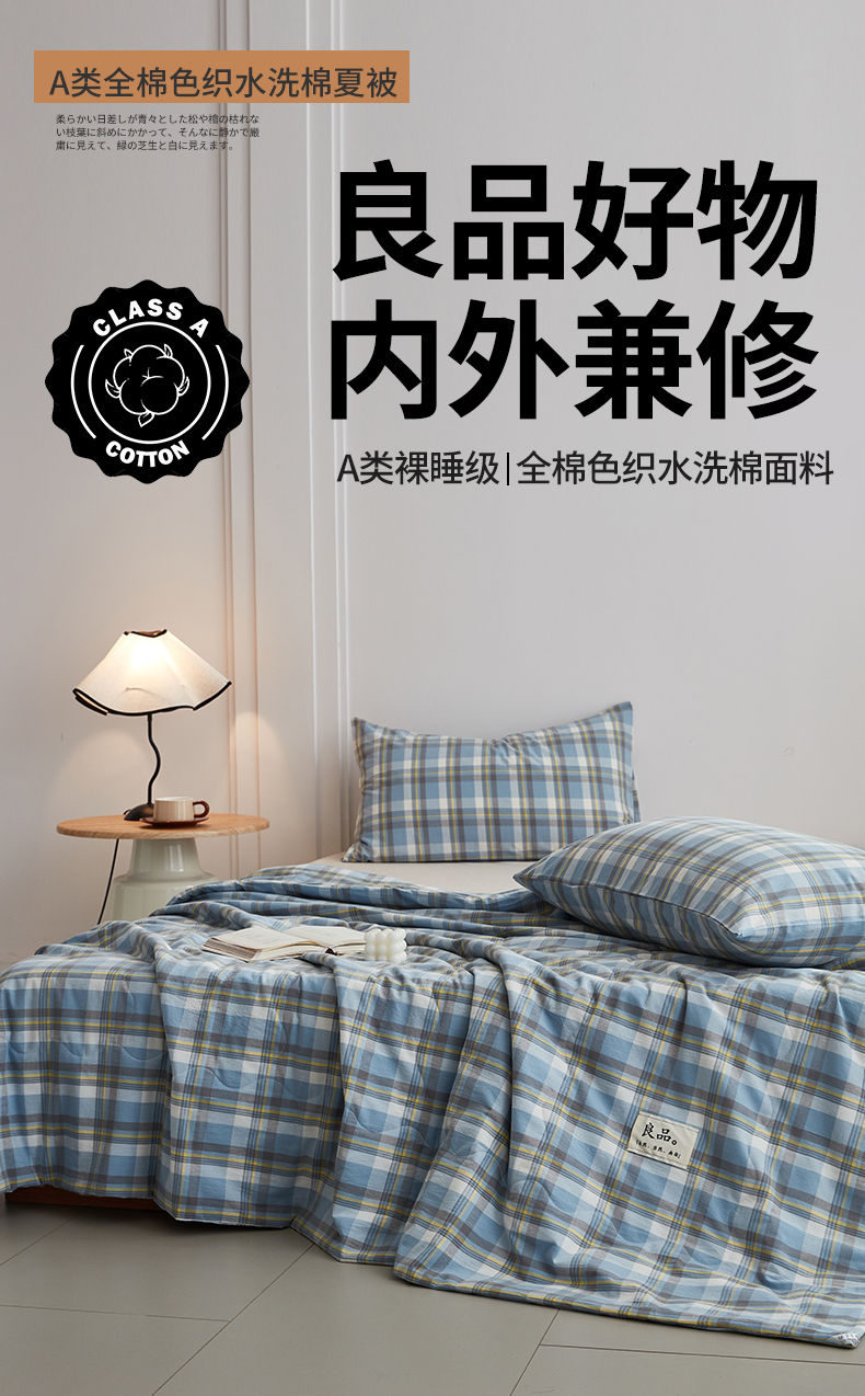 尊妙被业 2026新款全棉色织水洗棉春秋被夏被-叠拍 莫妮-兰