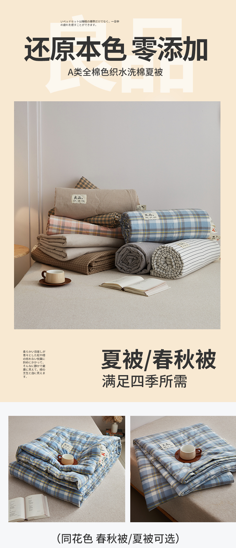 (总)尊妙被业 2026新款全棉色织水洗棉春秋被夏被-叠拍,春野-咖,灰细条,乐事-兰,乐事-绿,蜜格-灰,蜜格-米,莫妮-兰,莫妮-玉,沐妍-黄,千鸟格-灰,千鸟格-驼,童话-粉,晚晴-红,晚晴-咖