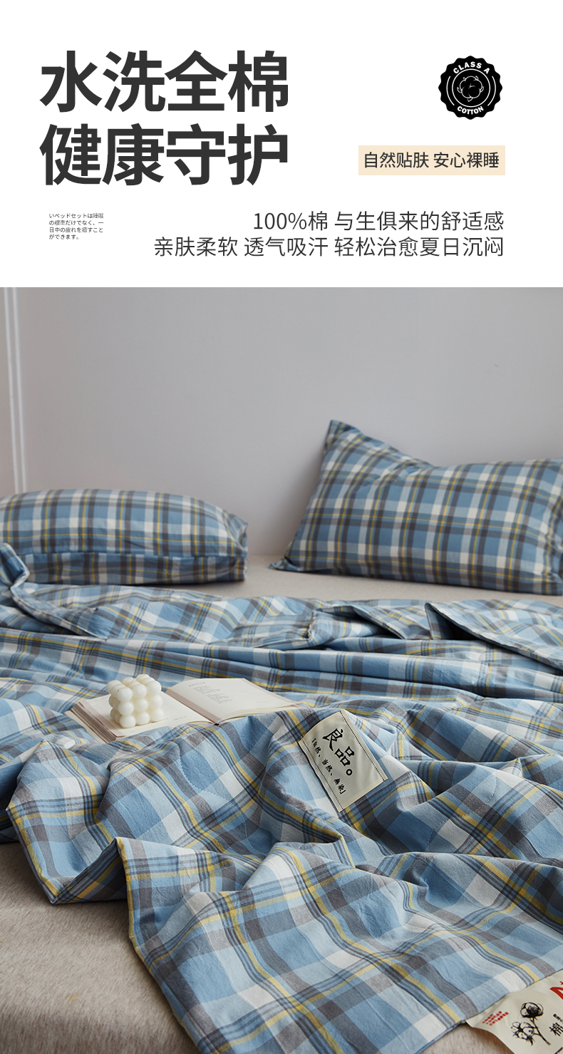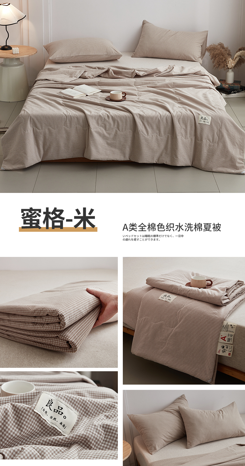 (总)尊妙被业 2026全棉色织水洗全棉棉花夏被 被子被芯 夏被四件套(格子款),贝拉咖,爱格,爱格兰,爱格绿,潮格白,粉小格,咖小格,蓝小格,绿小格