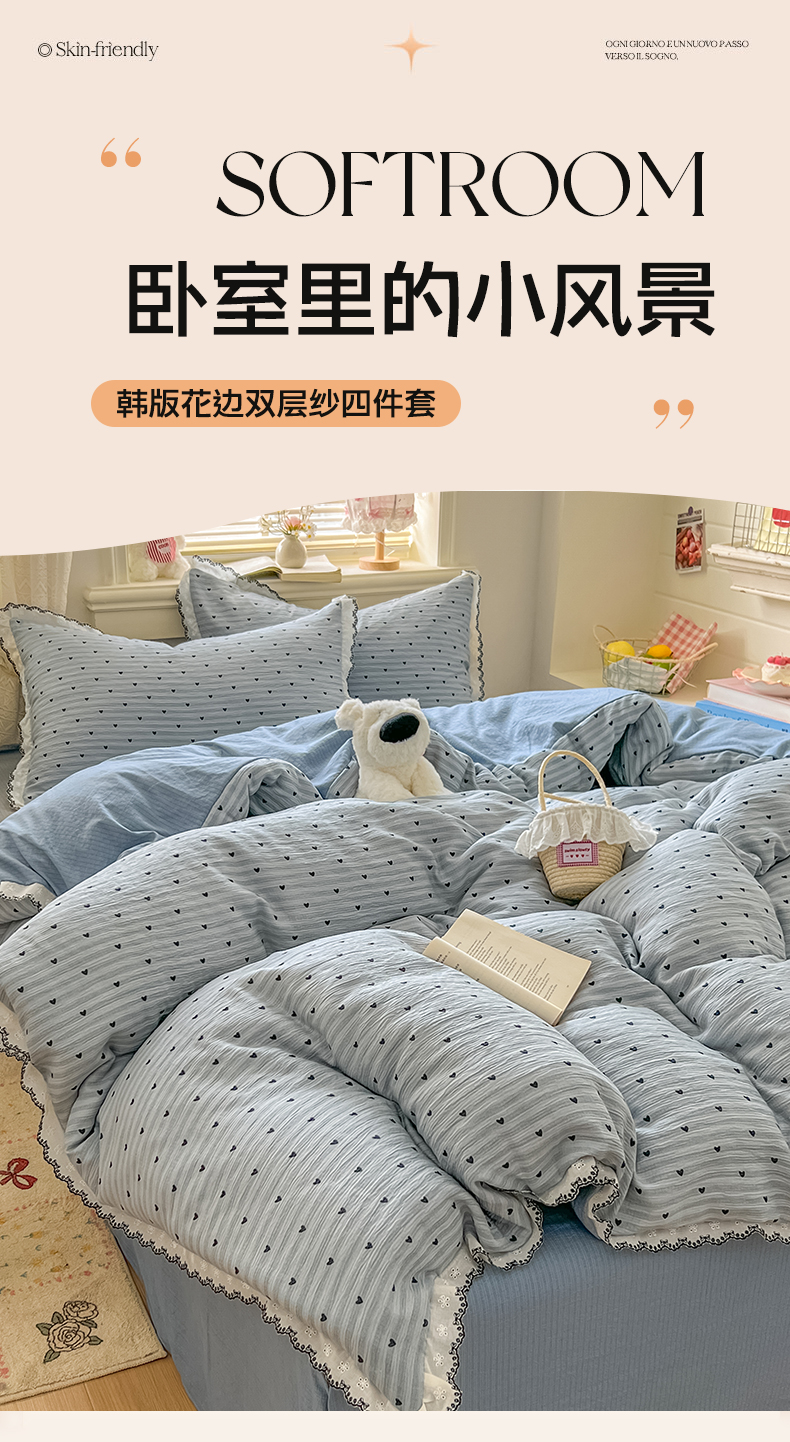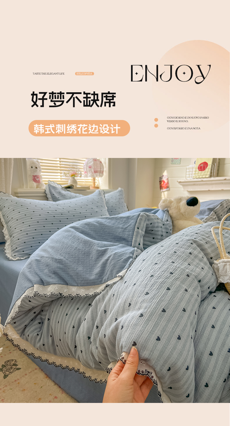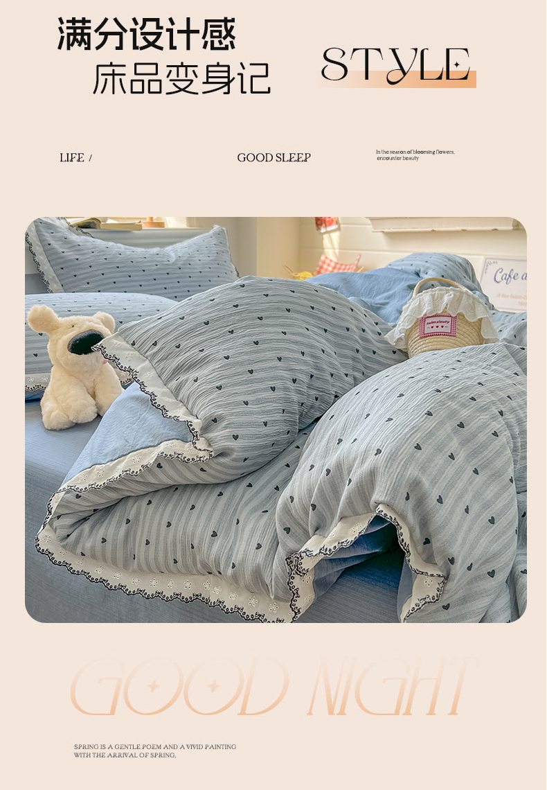 当前位置: 91家纺网 > 商品网购 > 床品套件 > 四件套 > 其它四件套 > 晚爱家纺(原晚安家居) 2026新款蕾丝刺绣花边韩版少女公主风三层纱四件套 雨爱
