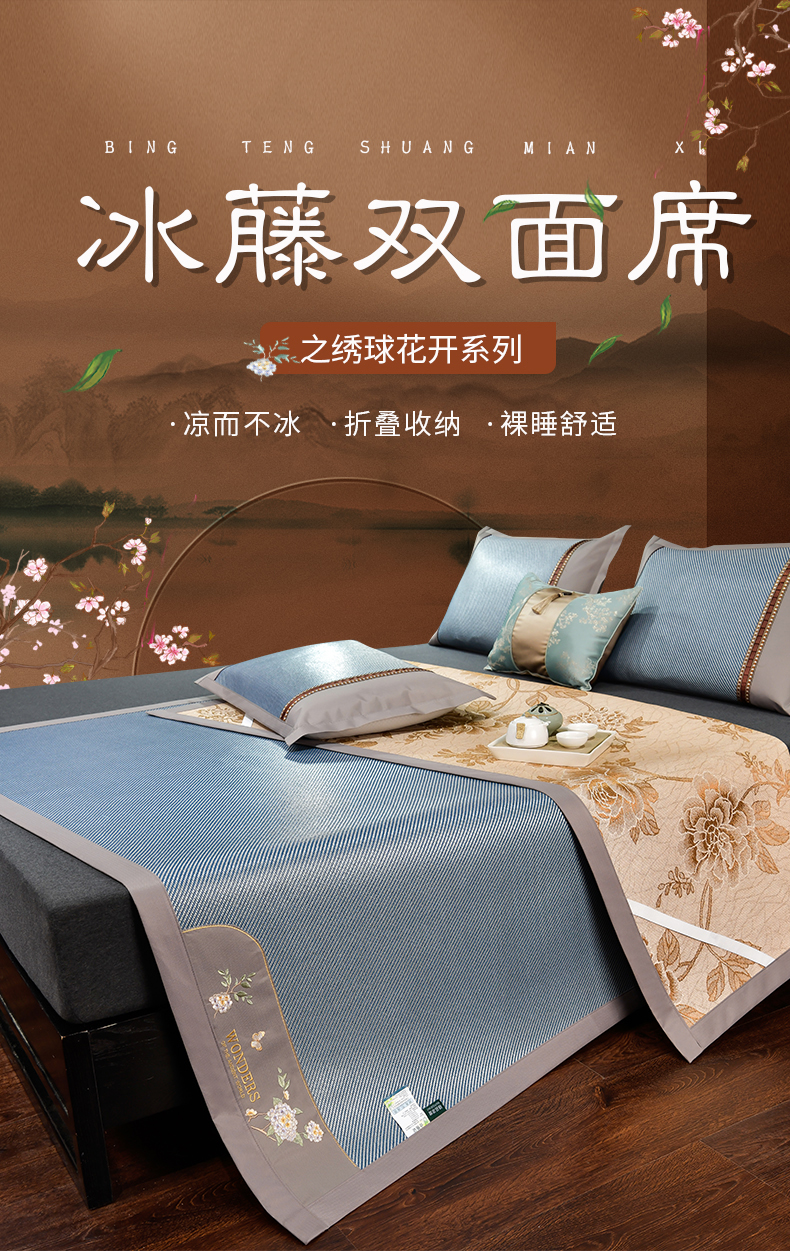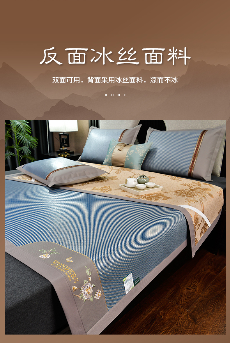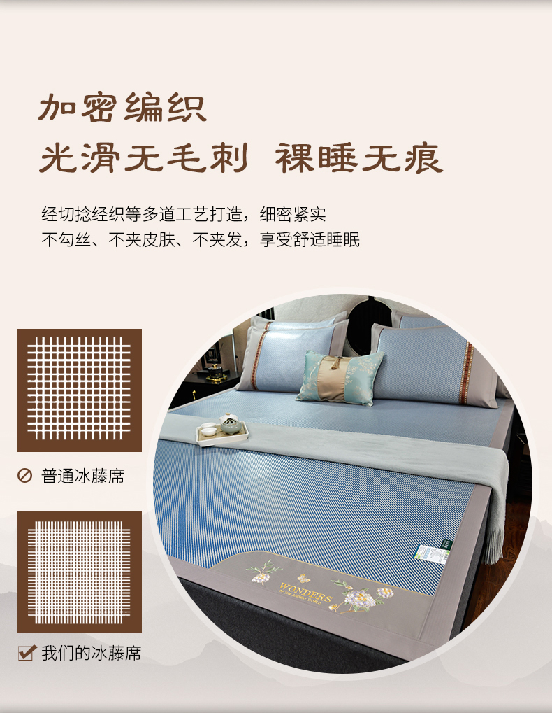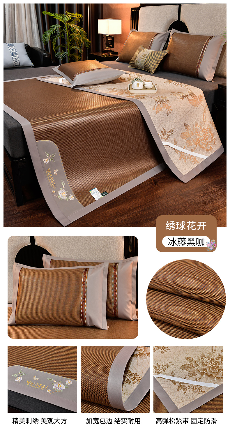 2023新款夏日冰点-冰藤双面席凉席藤席竹席冰丝席乳胶席,咖色,蓝色,绿色,香槟