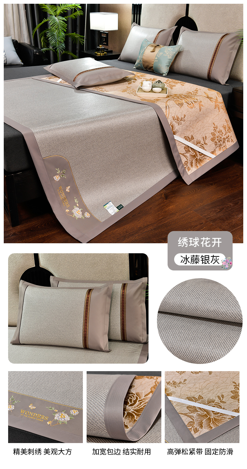 (总)2023新款超精密冰丝席-小斜纹系列-床笠款藤席凉席竹席,粉色,蓝色,绿色,银灰
