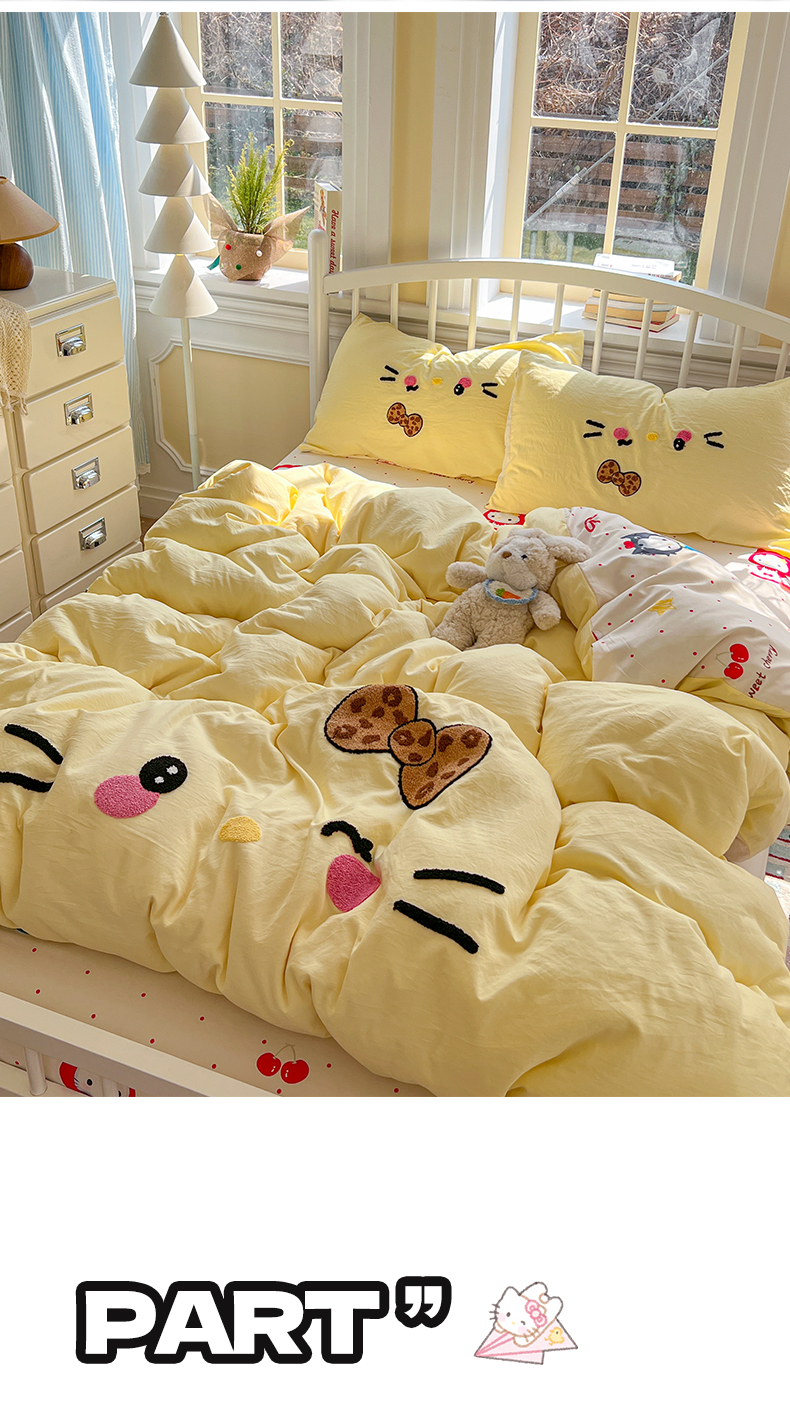 当前位置: 91家纺网 > 商品网购 > 床品套件 > 四件套 > 水洗棉四件套 > 颜选 2026春夏新款卡通款水洗棉毛巾绣四件套-凯蒂猫 凯蒂猫-芝士黄