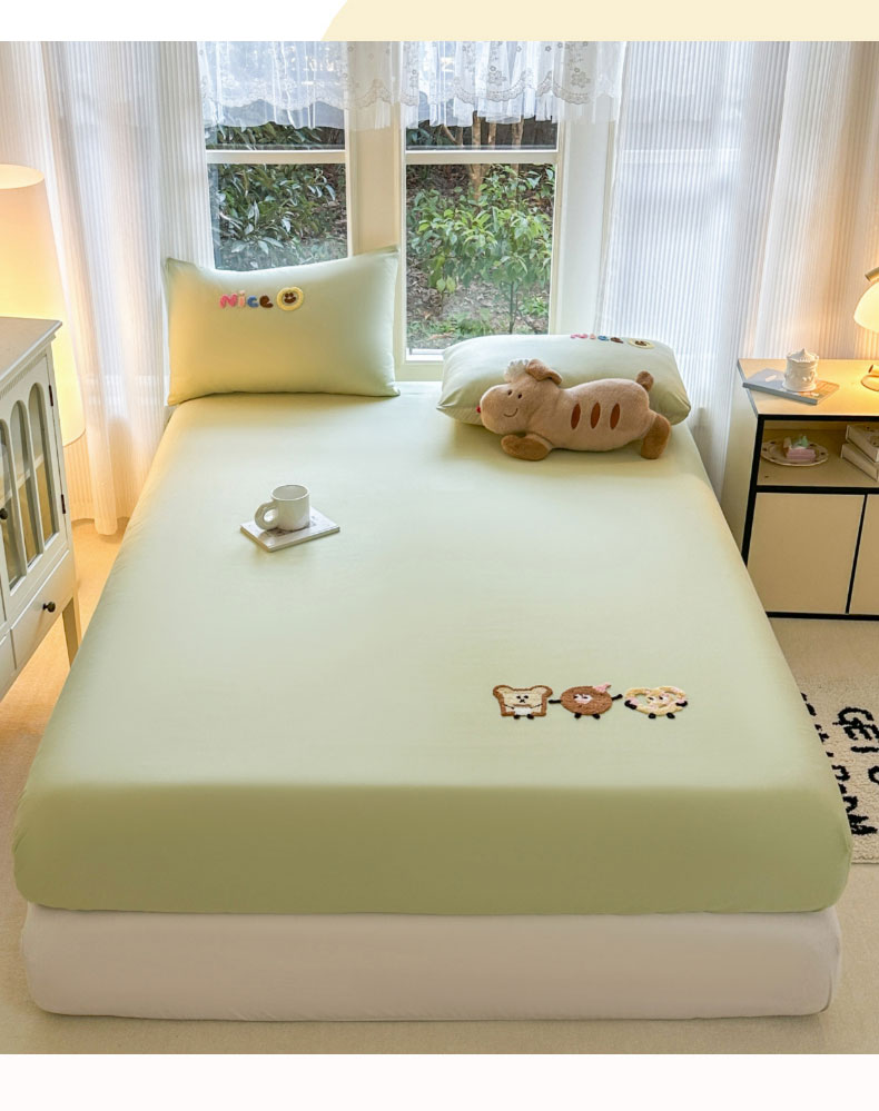 (总)布柔 2026新款纯棉全棉纯棉床笠纯色绣花卡通床笠床垫保护套罩,奶油绿,奶油粉,奶油黄