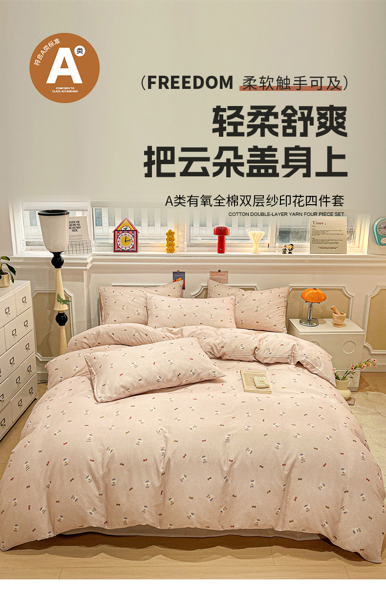 当前位置: 91家纺网 > 商品网购 > 床品套件 > 四件套 > 双层纱四件套 > 亿梵家居 2026新款A类母婴级有氧纯棉印花双面全棉双层纱四件套-床拍图知梦