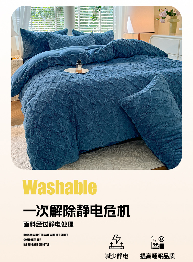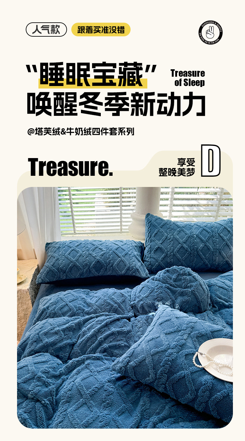 当前位置: 91家纺网 > 商品网购 > 床品套件 > 四件套 > 牛奶绒四件套 > 沐珩家纺 2026新款亲肤舒适加厚保暖塔芙绒牛奶绒系列四件套 莱茵蓝