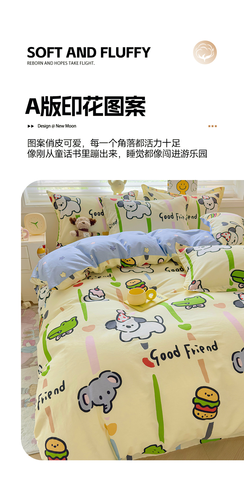 当前位置: 91家纺网 > 商品网购 > 床品套件 > 四件套 > 全棉普通四件套 > 沐珩家纺 2026新款12868纯棉全棉印花卡通系列四件套 乐园派