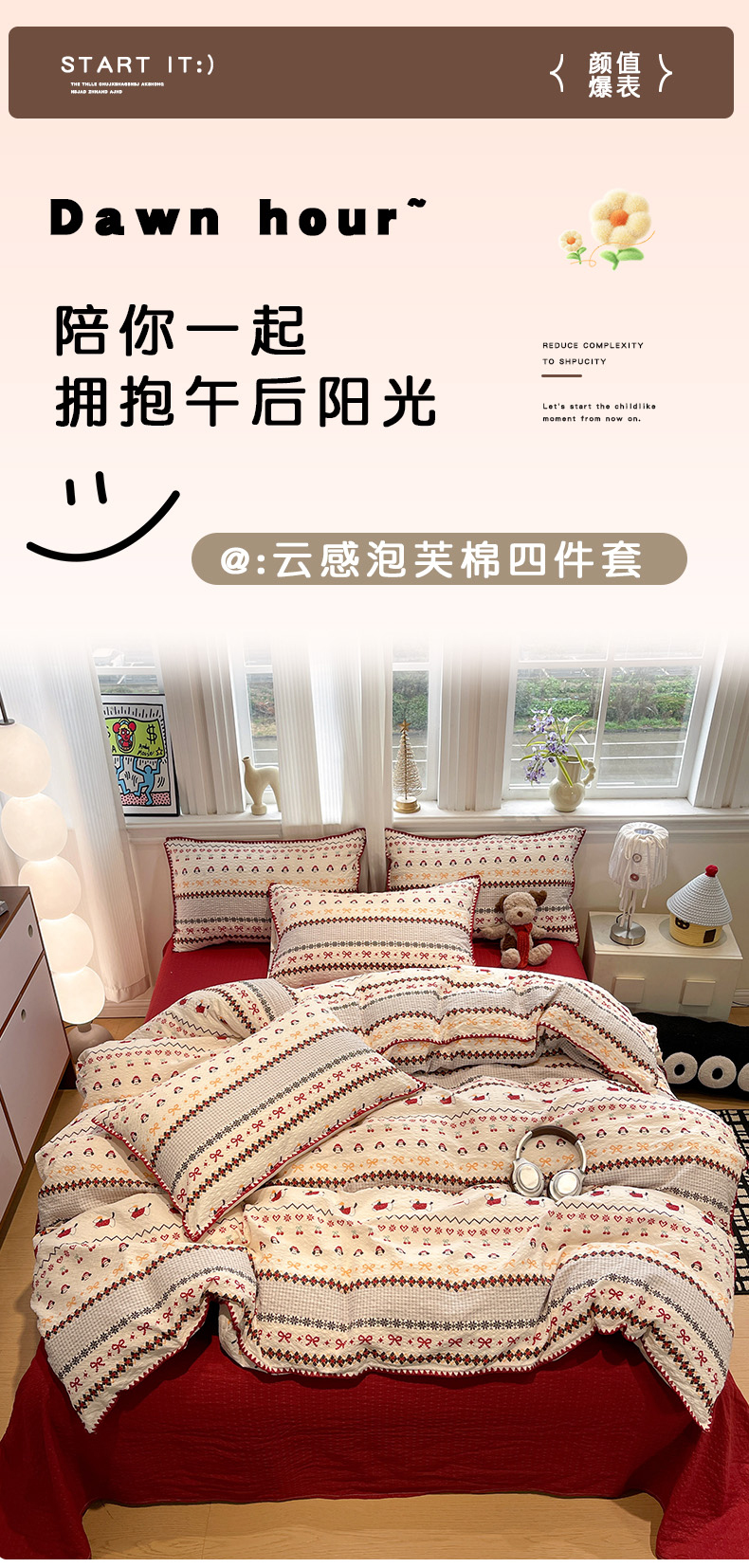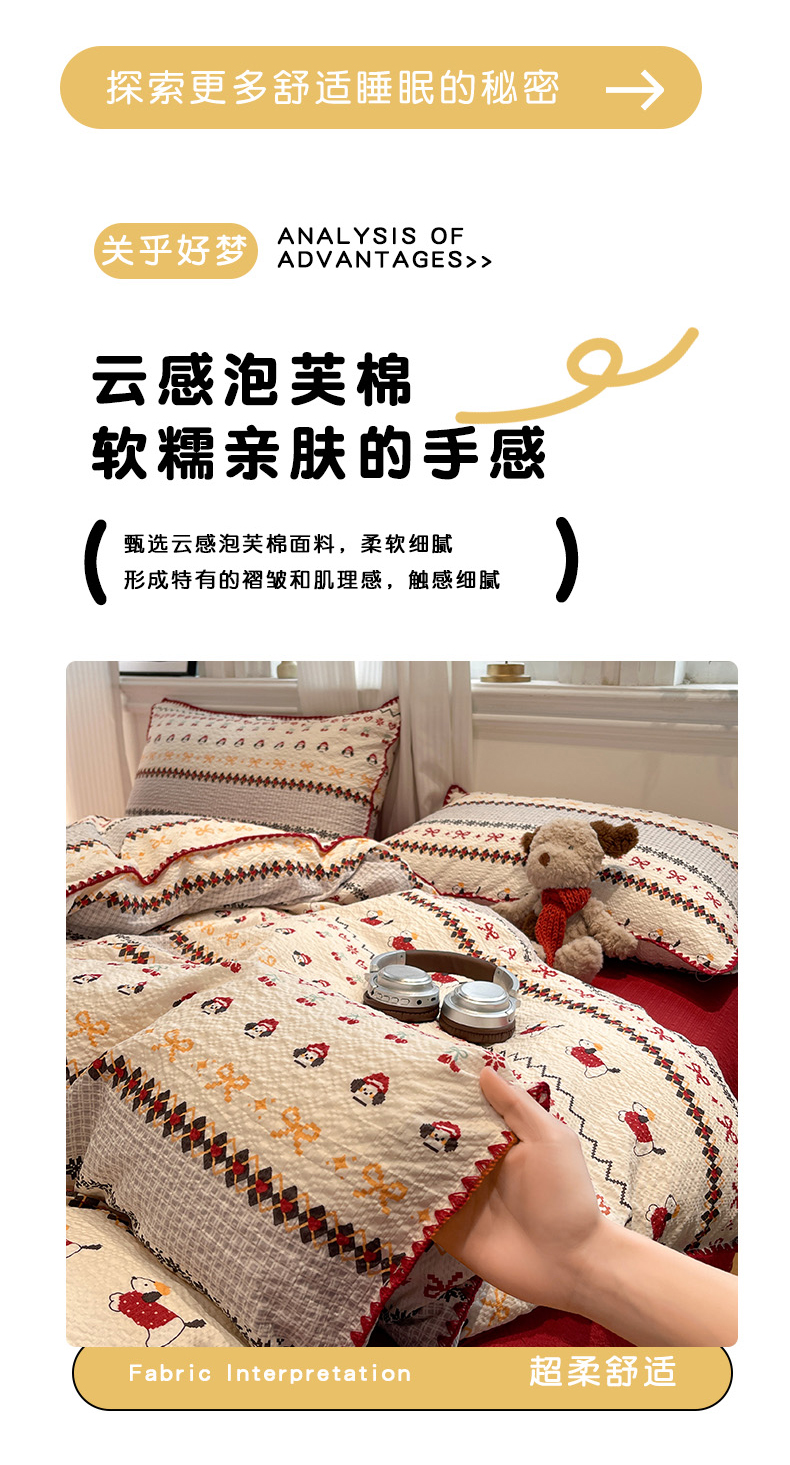 当前位置: 91家纺网 > 商品网购 > 床品套件 > 四件套 > 其它四件套 > 一比一家纺 2026新款云感泡芙棉小清新印花贝壳边四件套 蛋糕星人