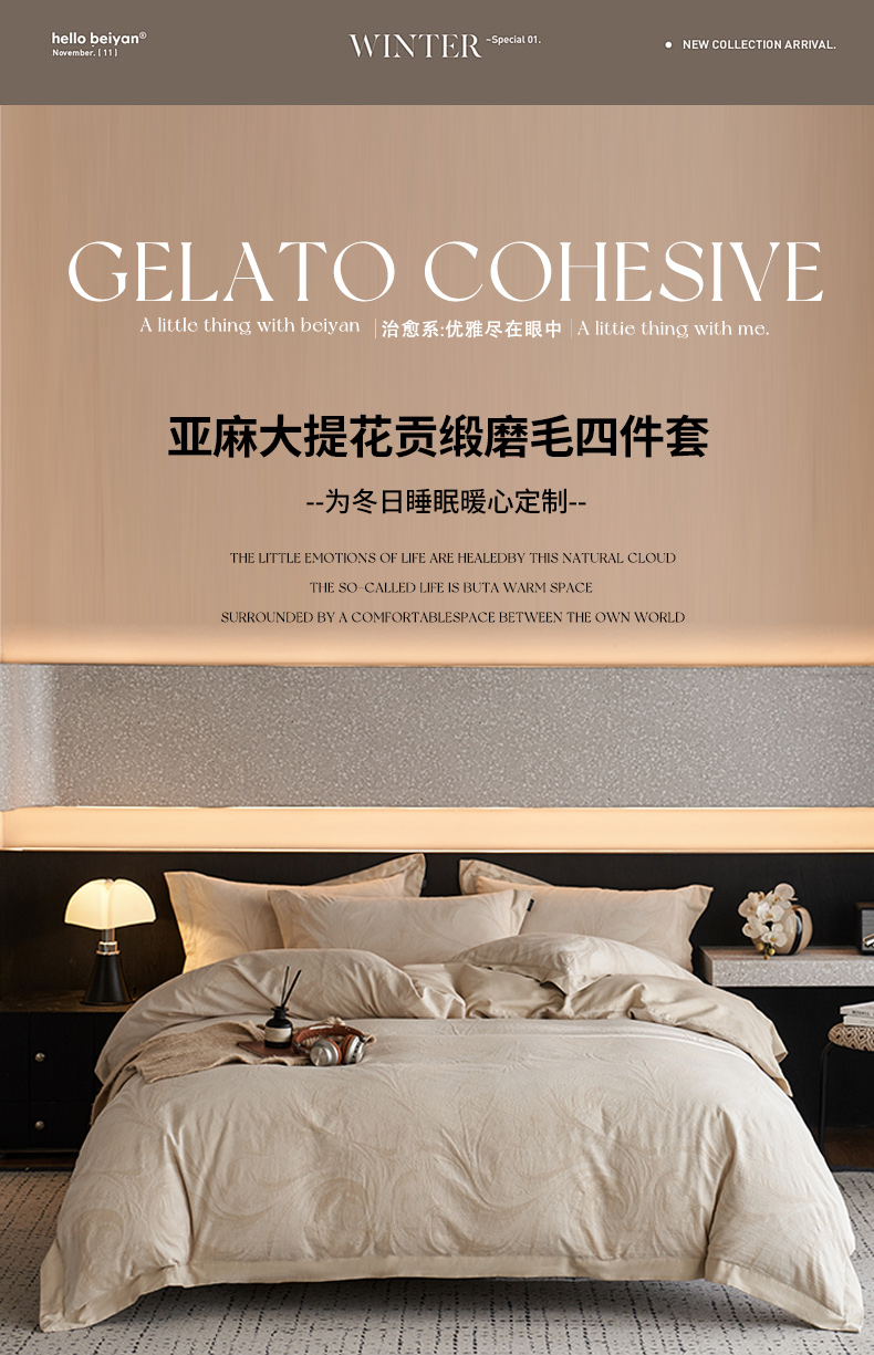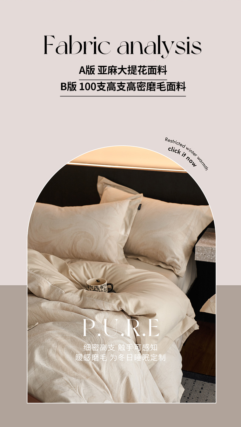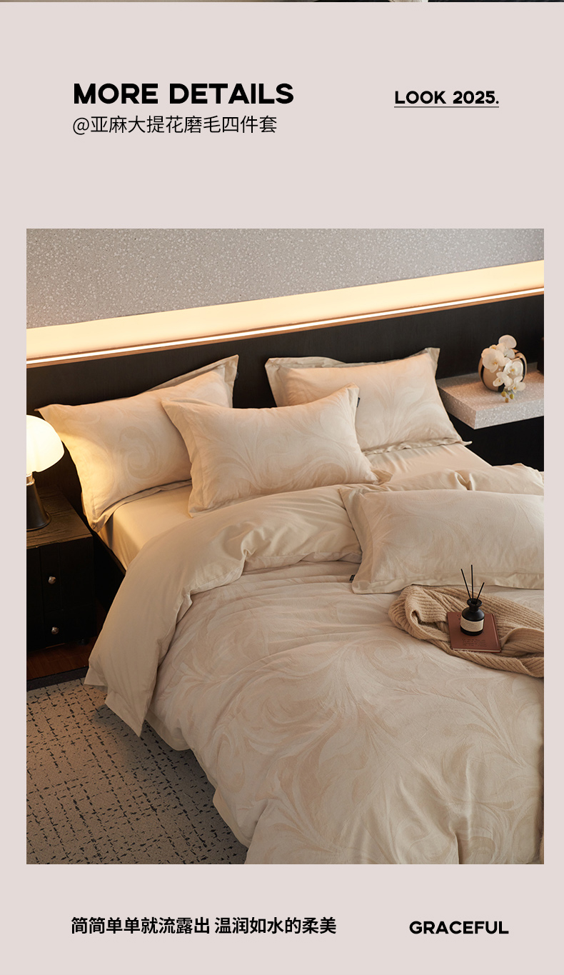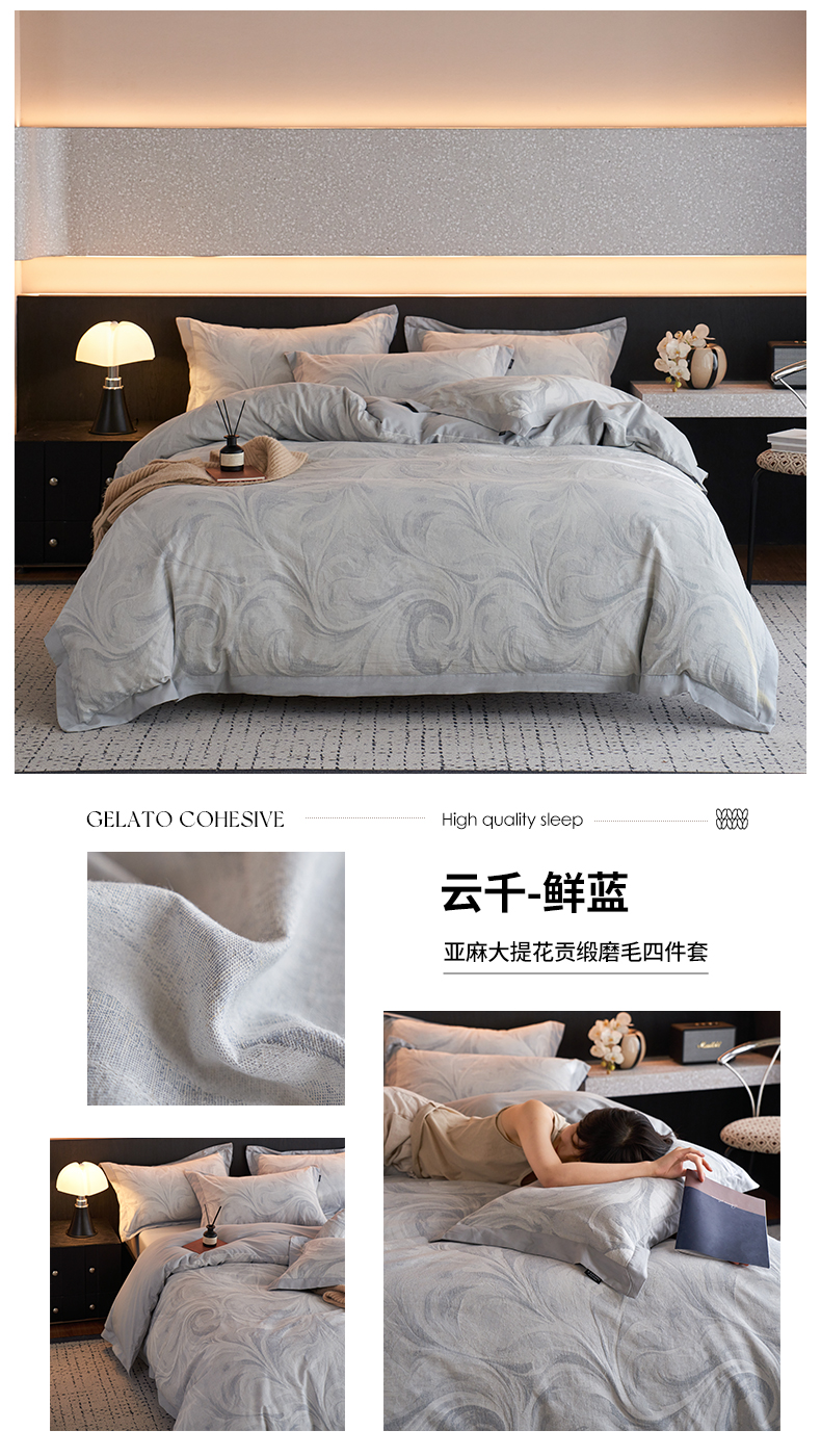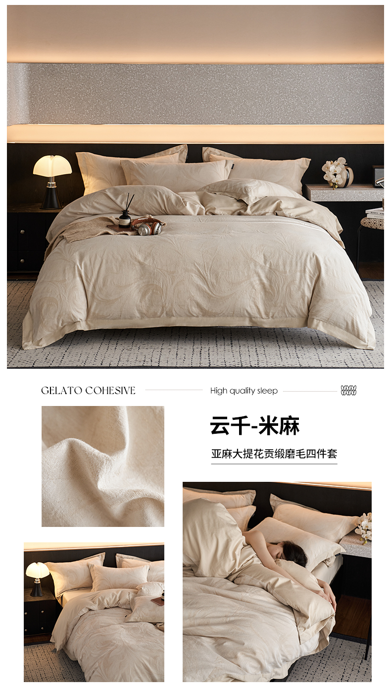 当前位置: 91家纺网 > 商品网购 > 床品套件 > 四件套 > 其它四件套 > 宜代光年 2026新款亚麻大提花贡缎磨毛(拼角款)四件套系列 云千-米麻