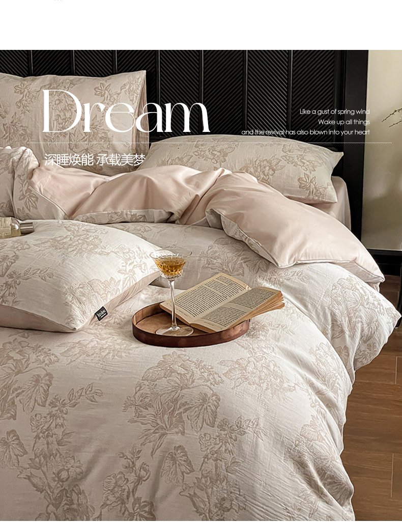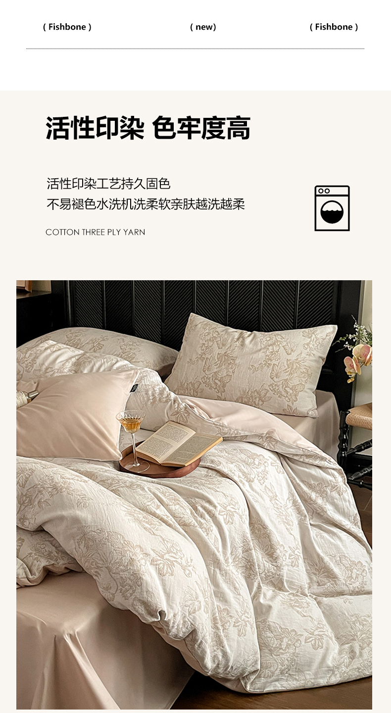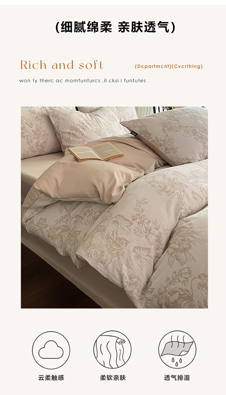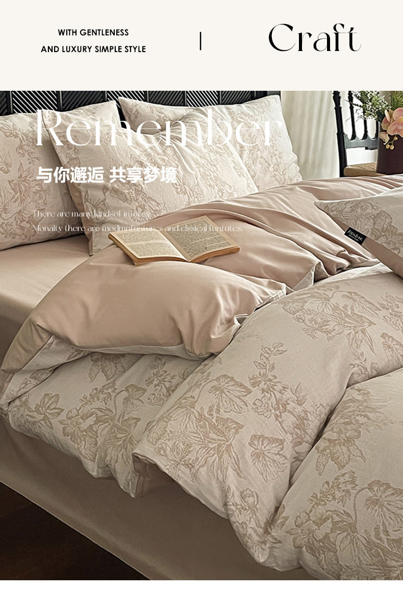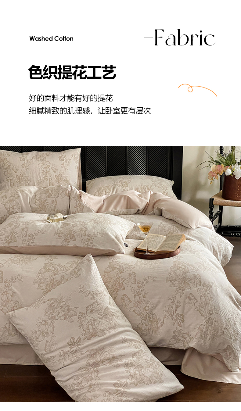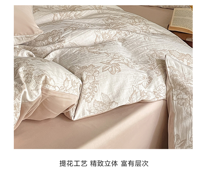 当前位置: 91家纺网 > 商品网购 > 床品套件 > 四件套 > 全棉普通四件套 > 宜代光年 2026新款全棉纯棉60S水洗棉三层纱色织提花四件套系列(经典保留花型) 执笔水墨-咖