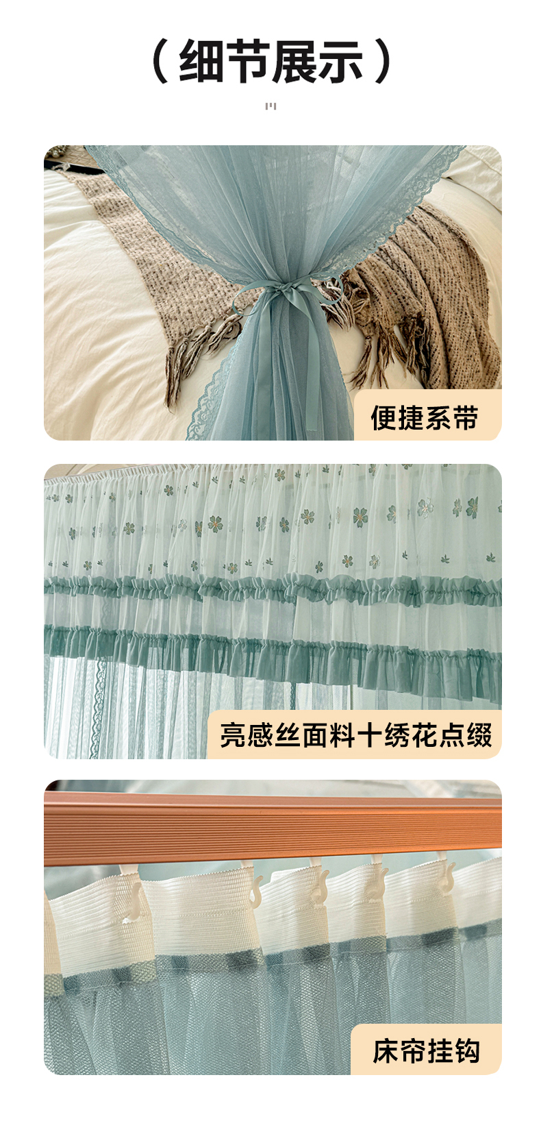 (总)梦尔佳蚊帐 2024新款学生遮光花边款蚊帐-美好明天,美好明天-淡蓝,美好明天-沫绿,美好明天-奶白,美好明天-奶黄,美好明天-藕玉,美好明天-雅灰