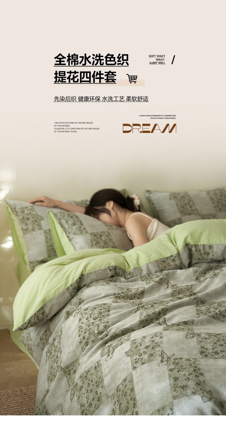 (总)如一 2026新款色织提花全棉水洗棉四件套第一批,叶笙-绿,叶笙-咖,兰序-绿,叶笙-粉,兰序-紫,兰序-蓝,兰序-咖