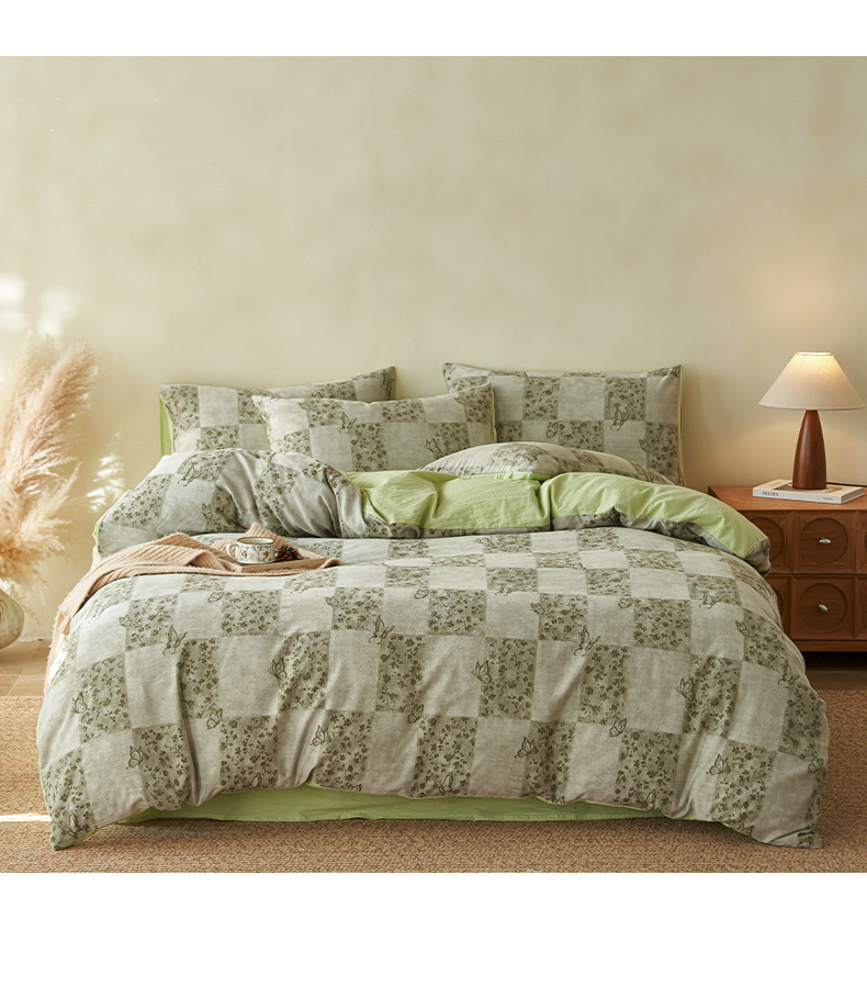 (总)如一 2025新款A类高克重牛奶绒印花三角针工艺四件套,秘境蓝,安梦,暗香,格韵咖,流年绿,芒种,秋思咖,香榭,芽青,雅韵蓝