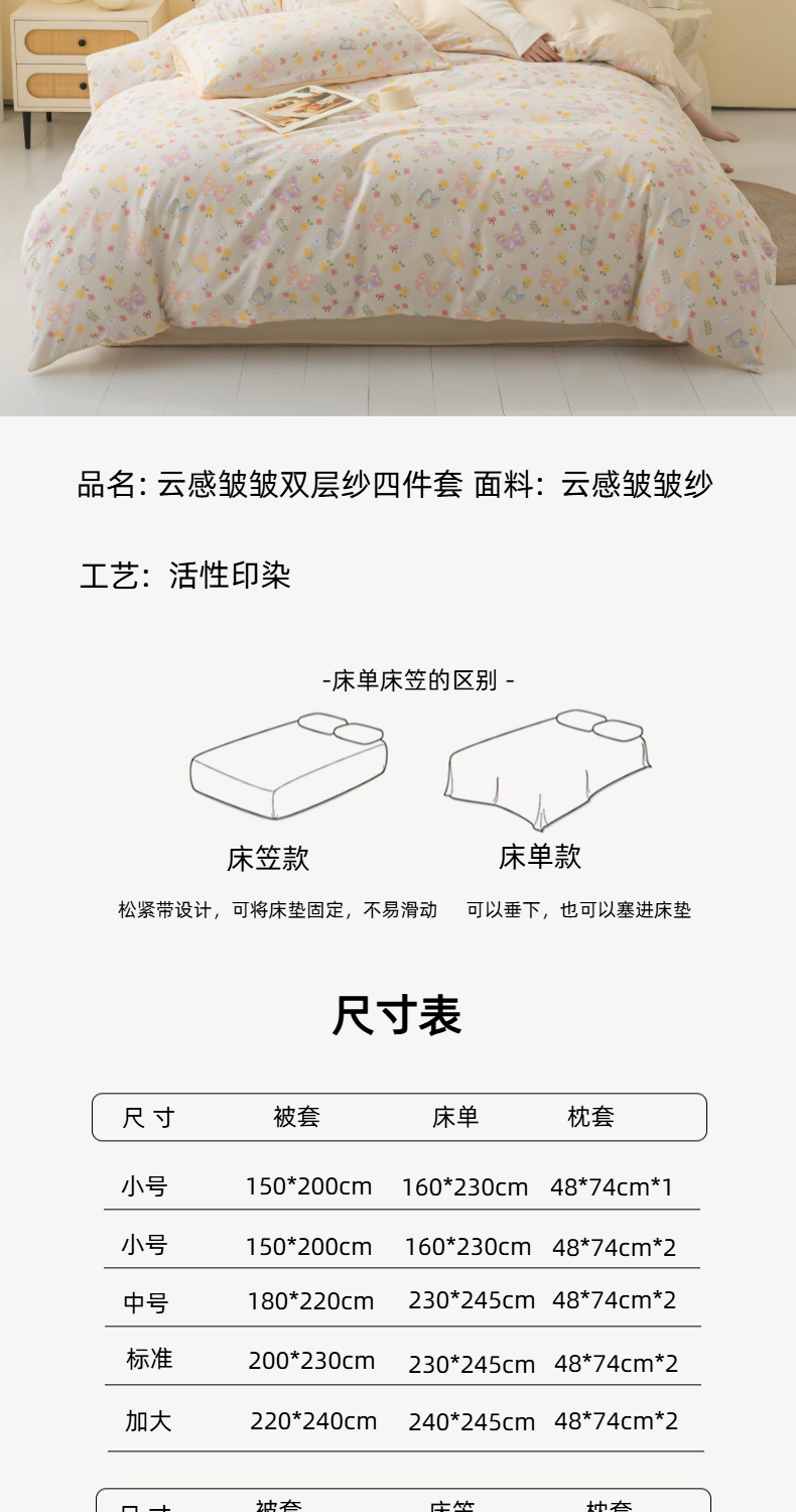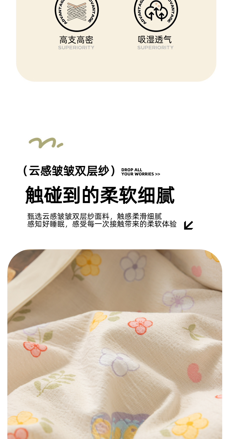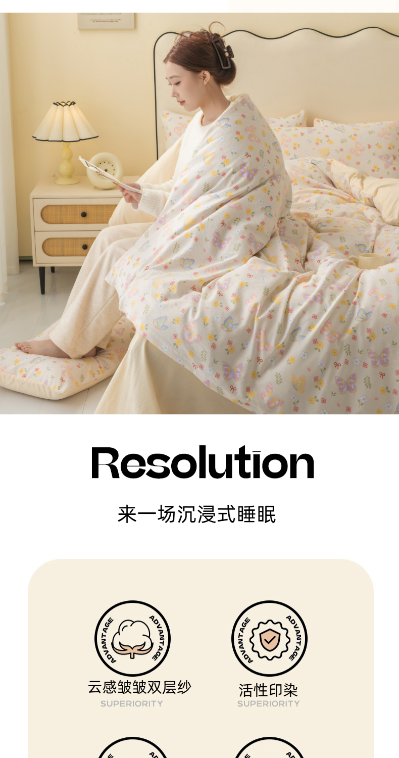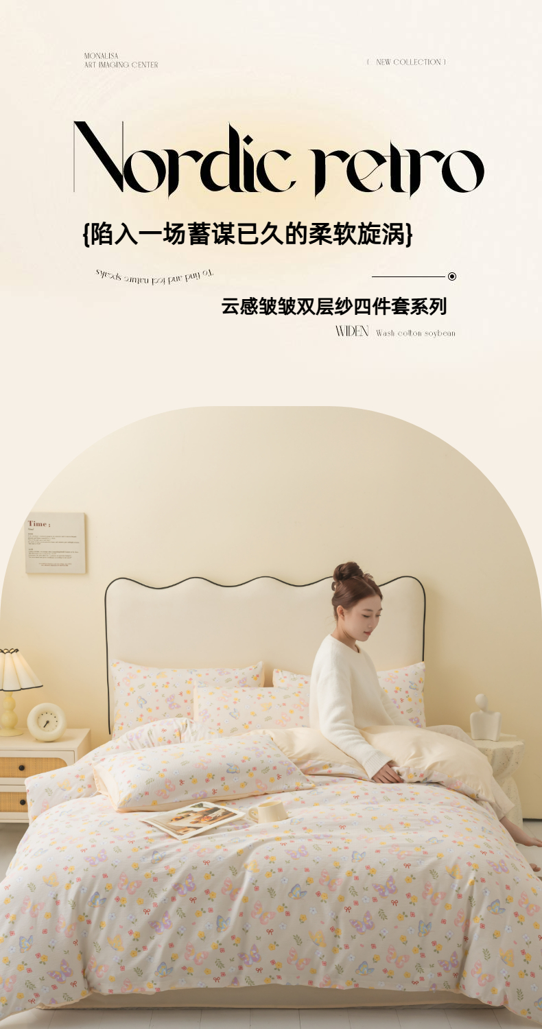 当前位置: 91家纺网 > 商品网购 > 床品套件 > 四件套 > 化纤活性四件套 > 铭浩家纺 2026春夏新款云感双层皱皱纱四件套 花间鲽语