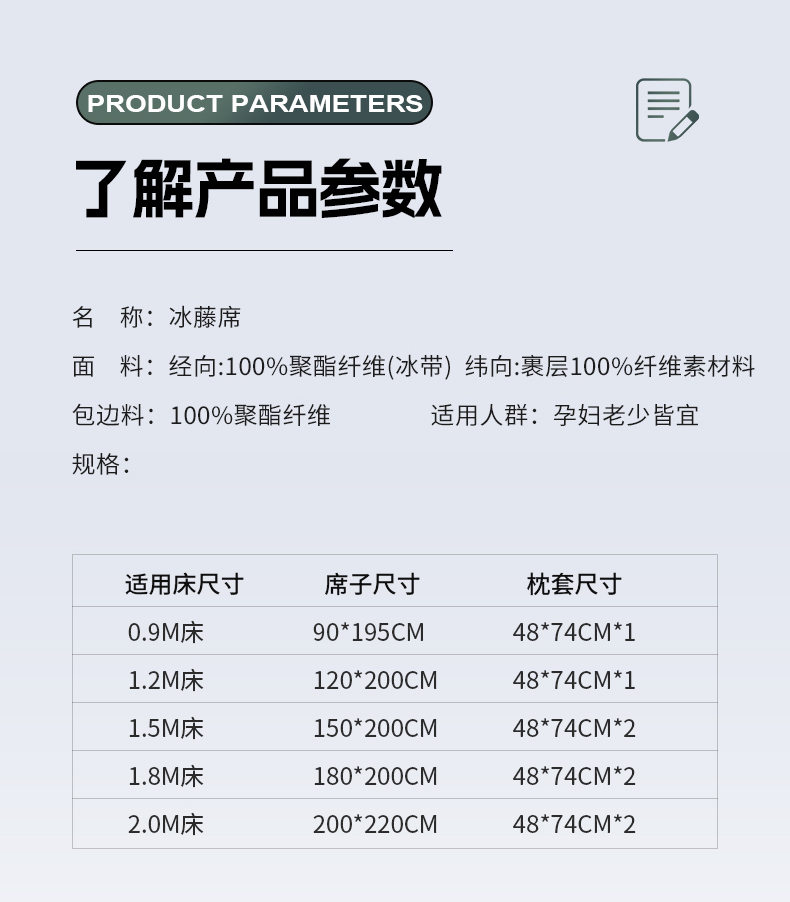 180x200cm单凉席+枕套一对 | ¥95.00 |