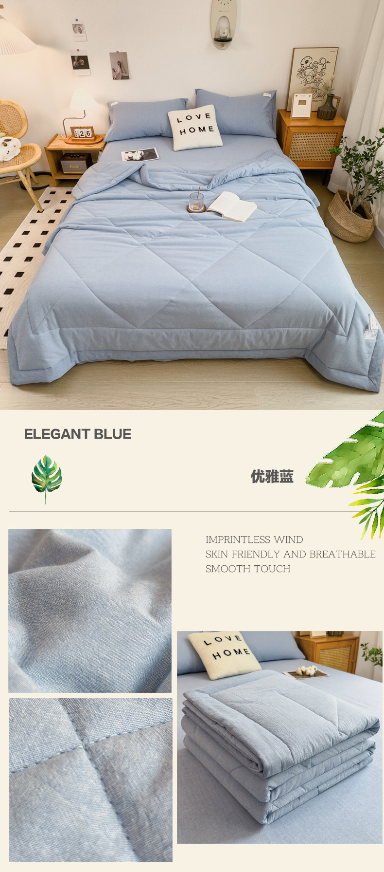 • 91家纺网 家纺一手货源 找家纺 宝士康家纺 2026新款10A抗菌无印风单夏被/夏被四件套 被子被芯 优雅蓝