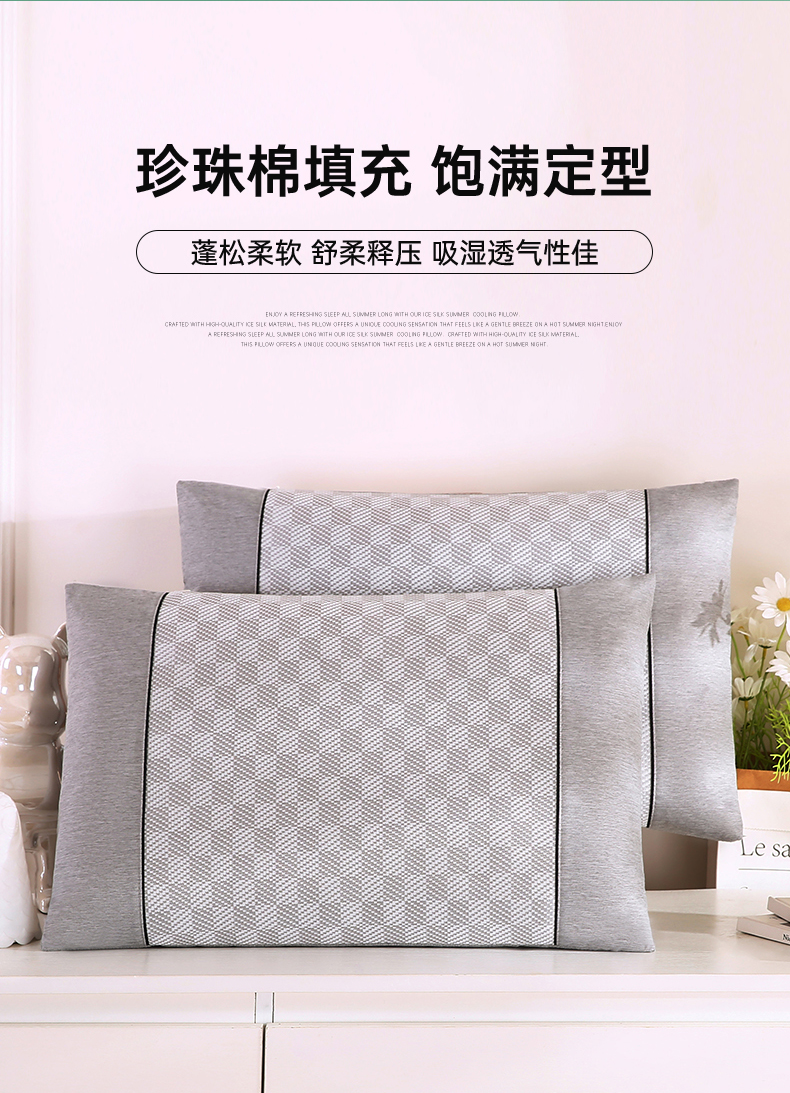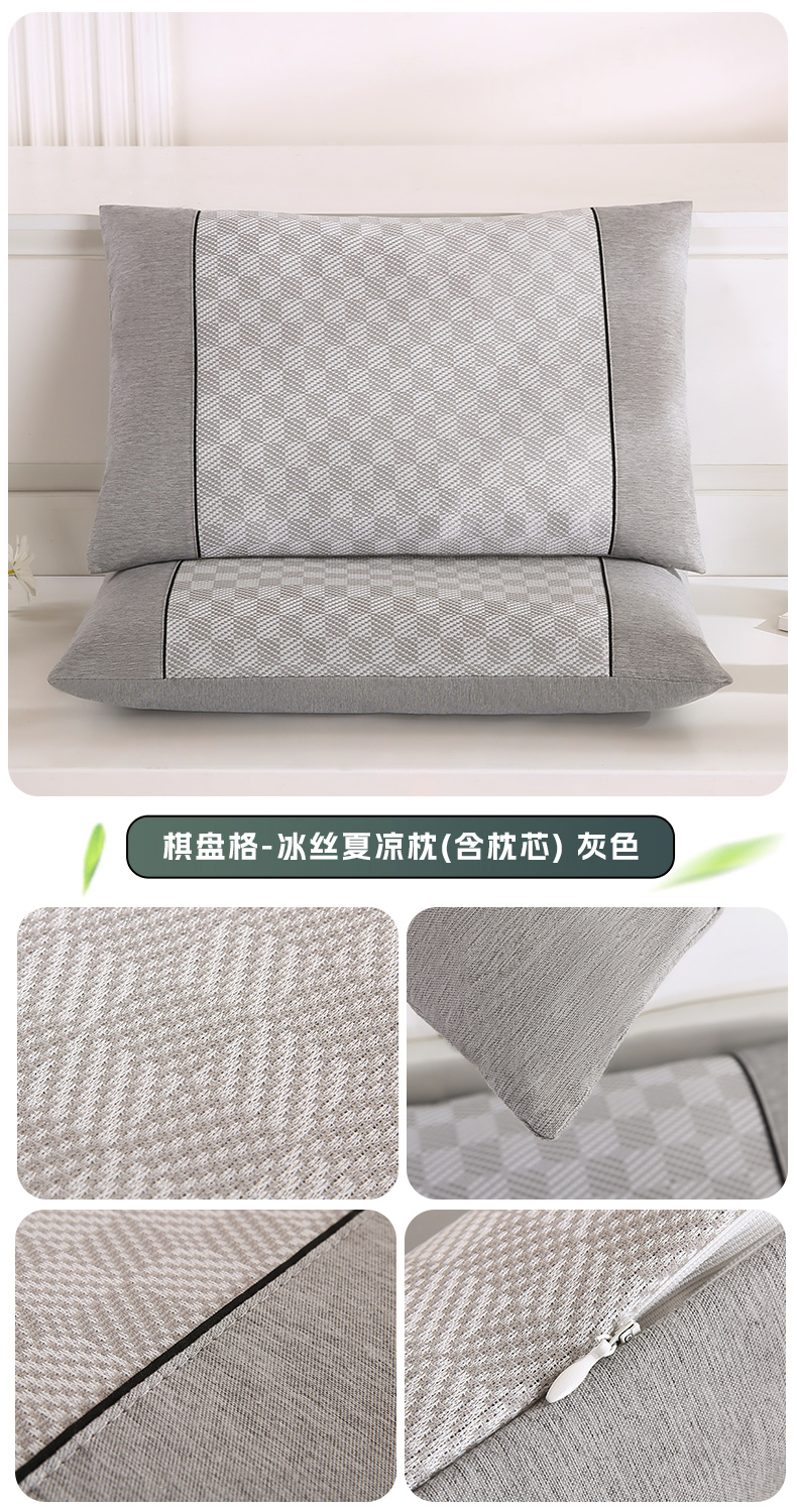 商品名称:(总)小牛席业 2026新款亲肤舒适棋盘格-冰丝夏凉枕枕头枕芯(枕套+枕芯)