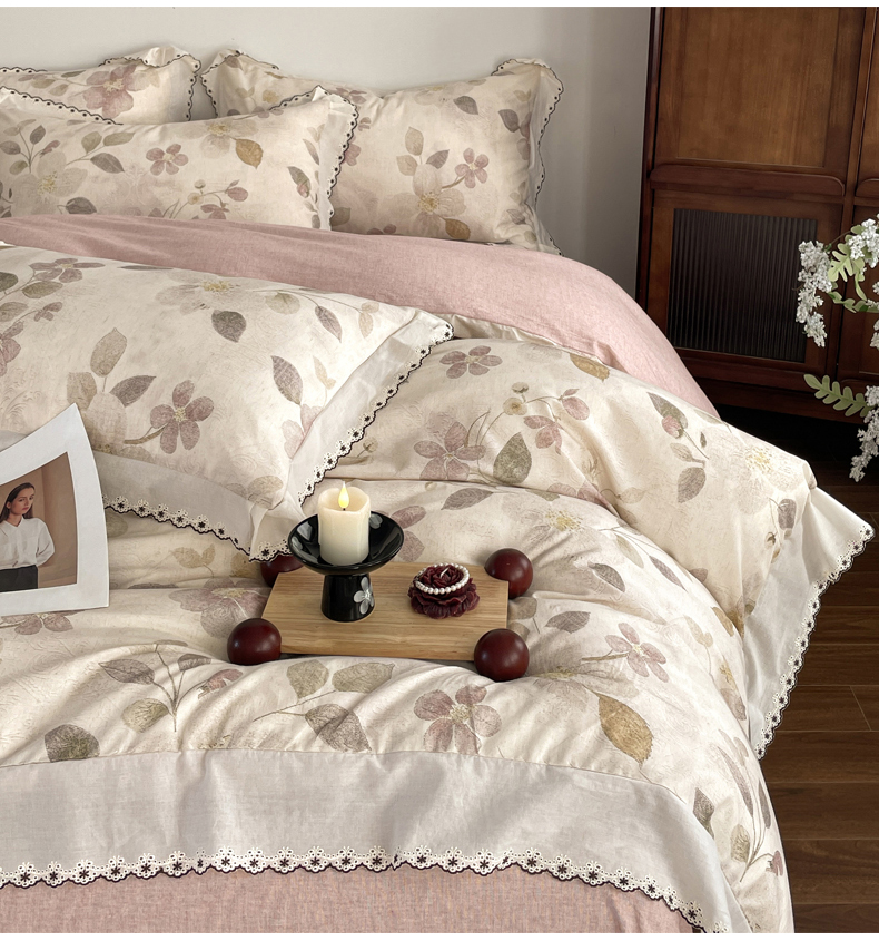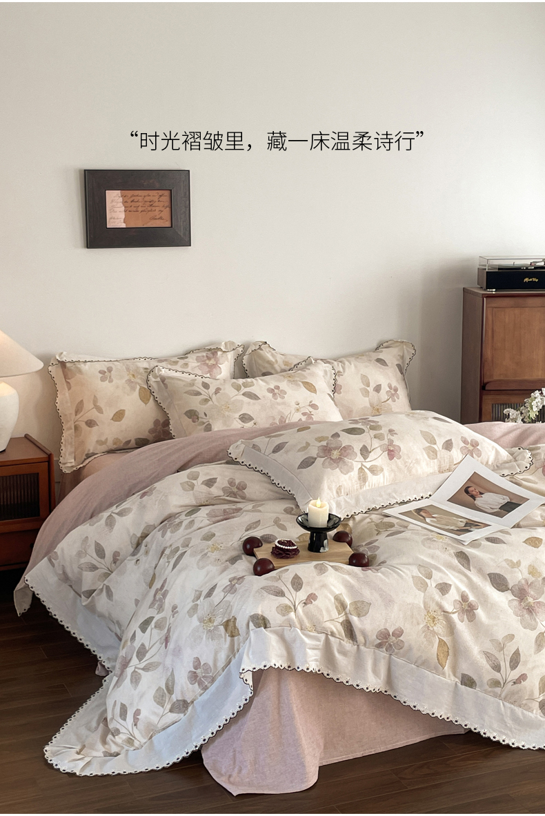 当前位置: 91家纺网 > 商品网购 > 床品套件 > 四件套 > 莱赛尔四件套 > 慕晨 2026新款天丝莱赛尔棉麻数码印色织花边被套四件套高级田园美式直播热款 紫慕
