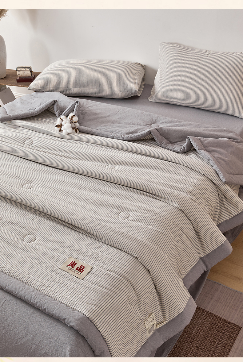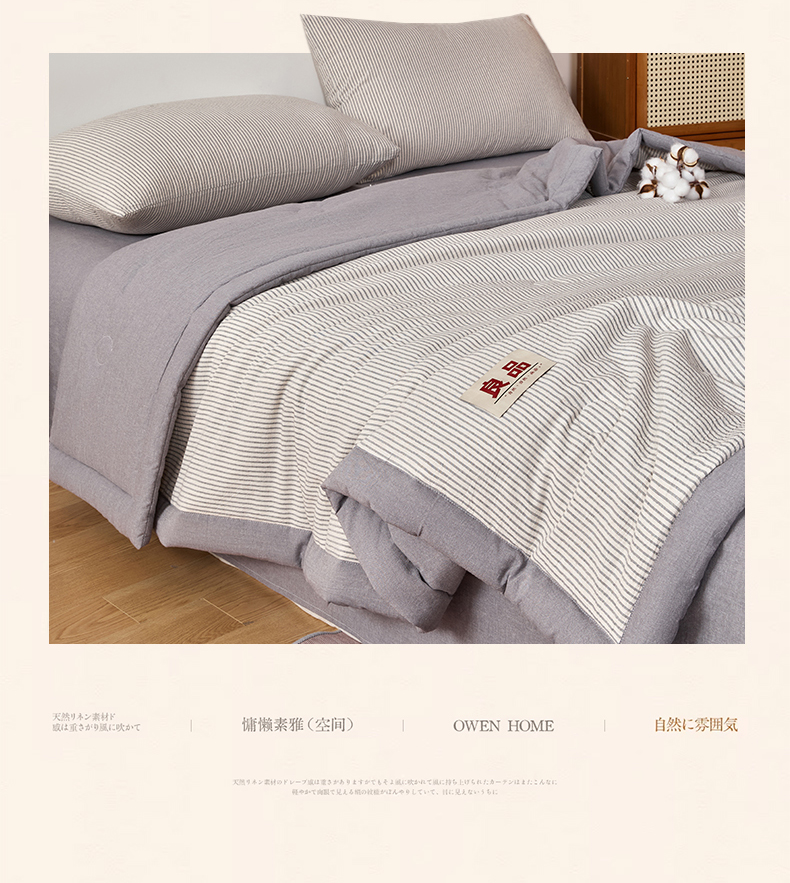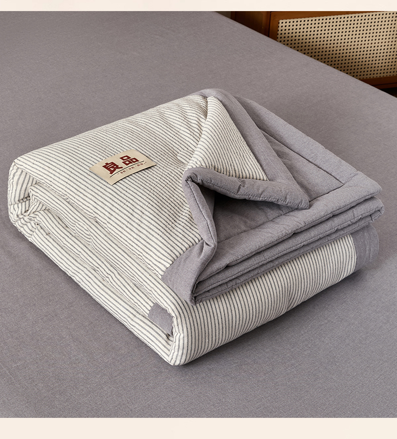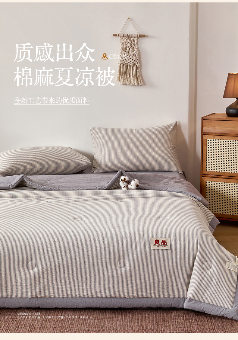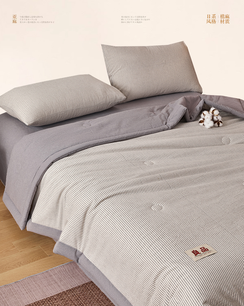 • 91家纺网 家纺一手货源 找家纺 恬思语家纺 2026新款春夏新款棉麻条纹棉花夏被空调被夏凉被 棉麻条-灰