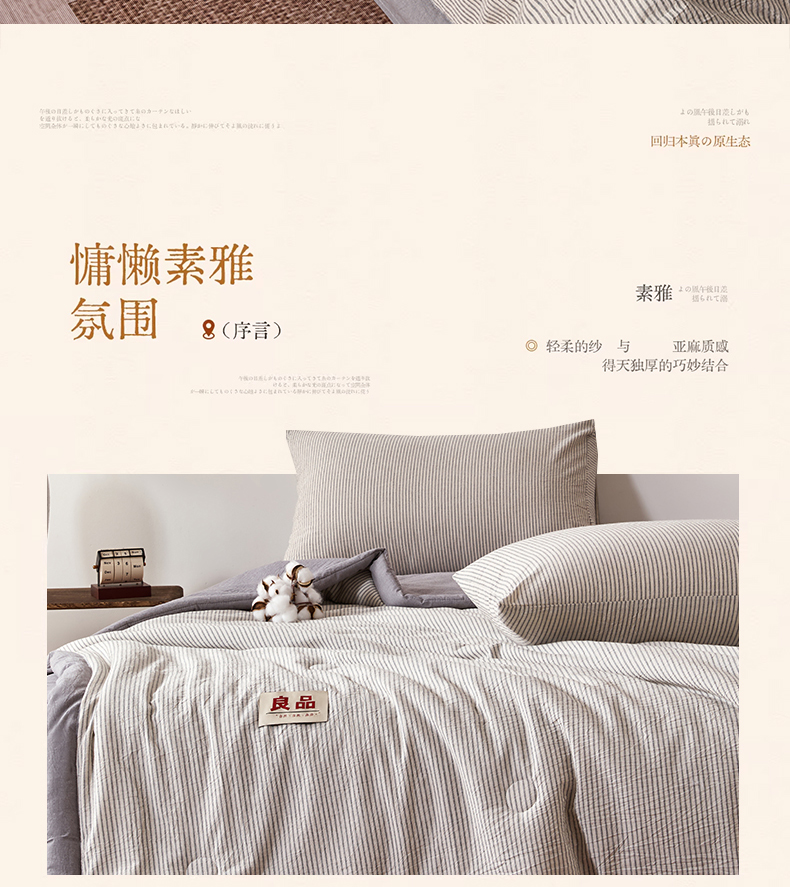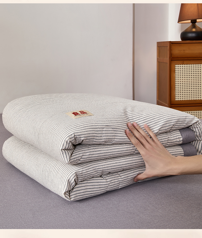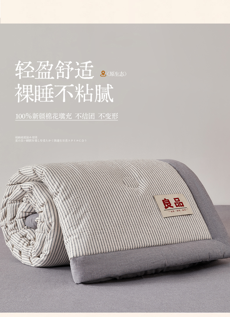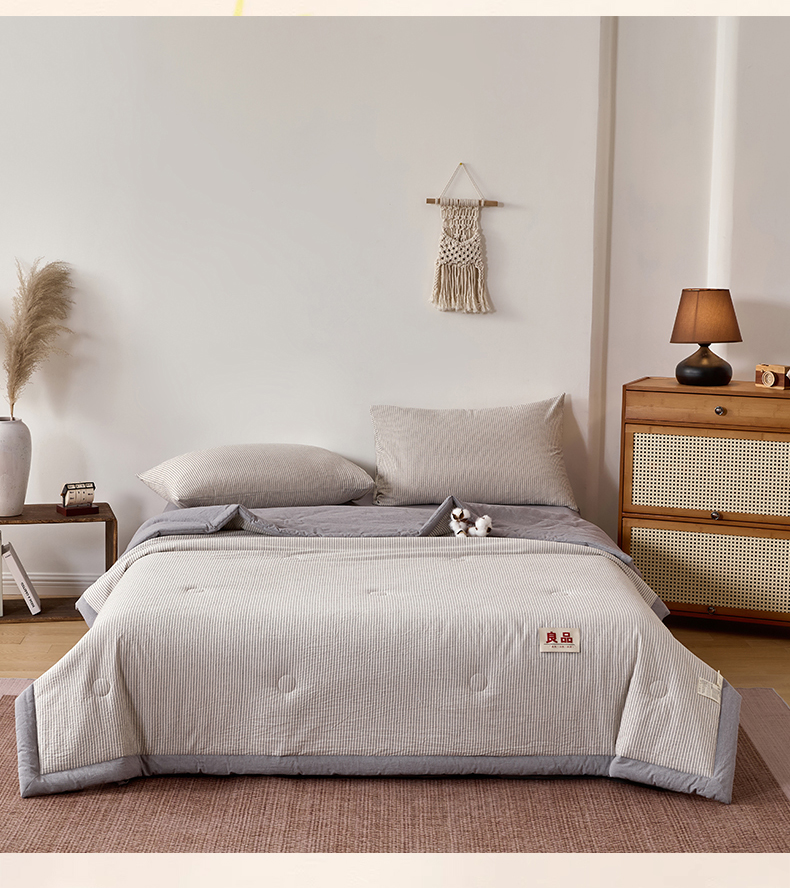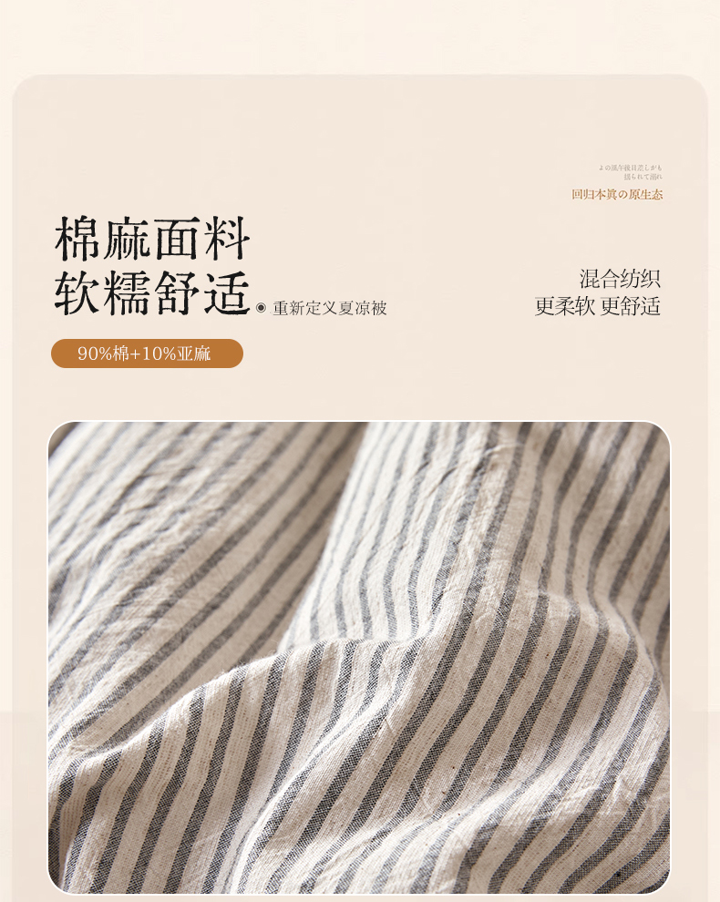• 91家纺网 家纺一手货源 找家纺 恬思语家纺 2026新款春夏新款棉麻条纹棉花夏被空调被夏凉被 棉麻条-灰