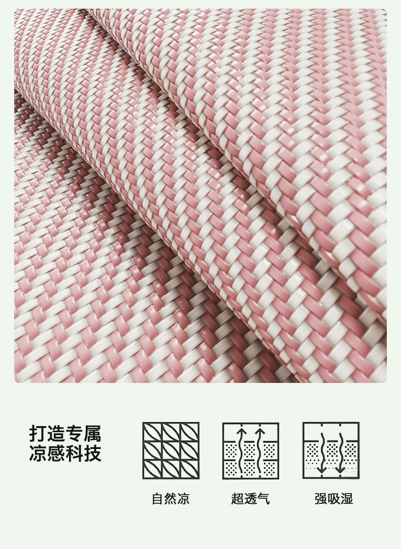商品名称:鑫姿席业 夏季高端凉席竹席2026新款pe藤席a类母婴级1.8m空调软席子可水洗-青岚织梦系列 青岚织梦-粉
