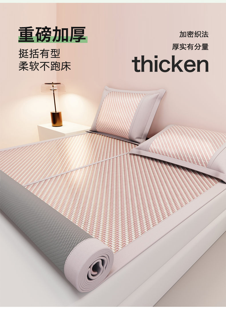鑫姿席业 夏季高端凉席竹席2026新款pe藤席a类母婴级1.8m空调软席子可水洗-青岚织梦系列 青岚织梦-粉