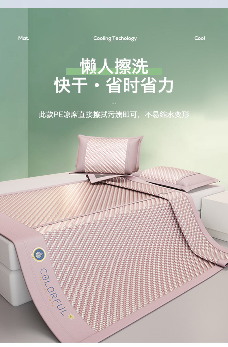(总)鑫姿席业 夏季高端凉席竹席2026新款pe藤席a类母婴级1.8m空调软席子可水洗-青岚织梦系列,青岚织梦-粉,青岚织梦-灰,青岚织梦-绿,青岚织梦-蓝