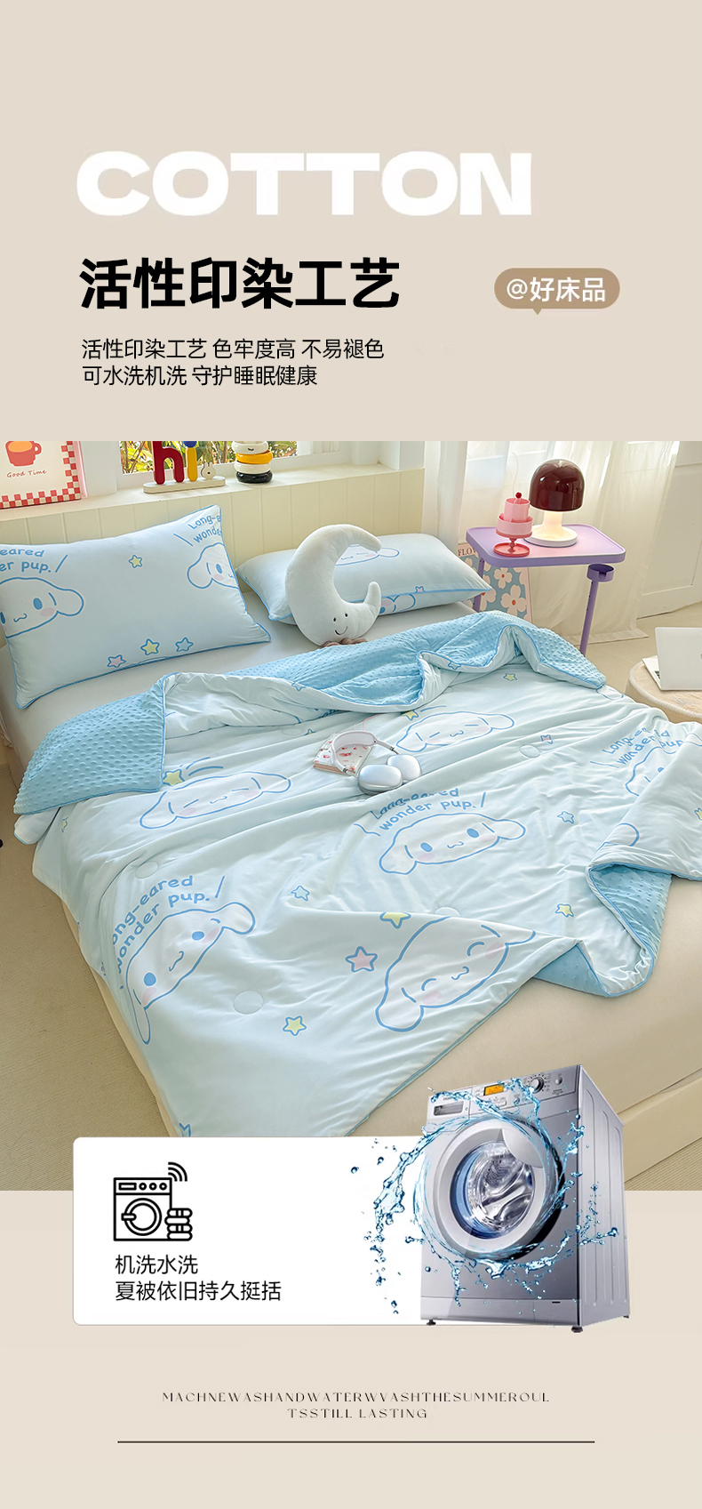 商品名称:恒畅 2026新款A类正版授权(含氨)卡通针织棉3D凉感豆豆夏被夏凉被 夏日派对
