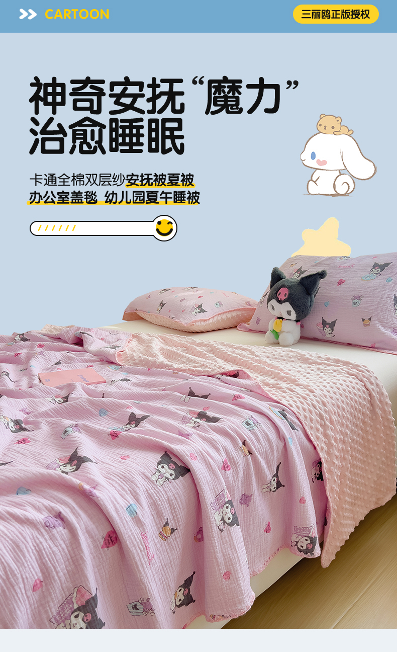 兄弟坊 2026新款正版授权卡通全棉双层纱安抚被夏被纱布豆豆毯学校午睡被 小小库洛米