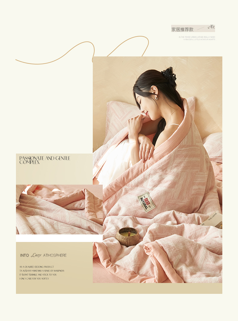 当前位置: 91家纺网 > 商品网购 > 被子 > 夏被 > 恬思语家纺 2026春夏新款里外全棉纯棉大提花棉花夏被--洛克系列 洛克-粉