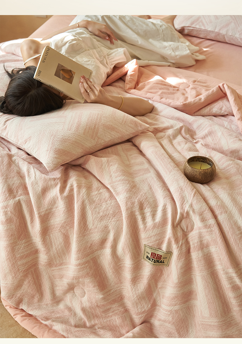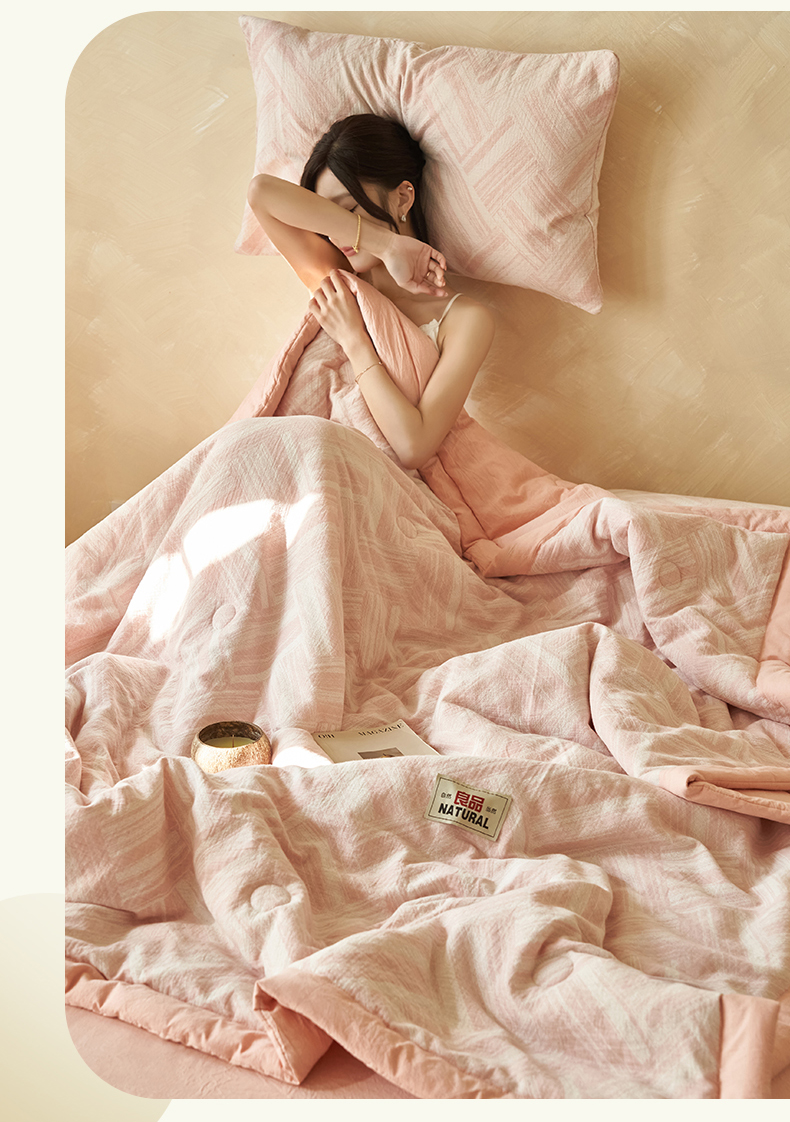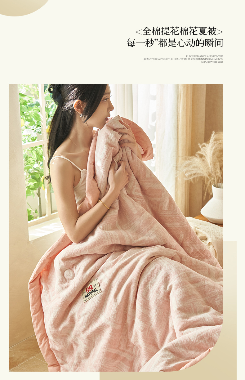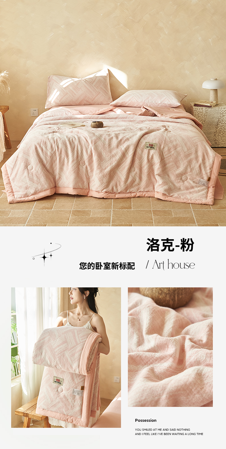 恬思语家纺 2026春夏新款里外全棉纯棉大提花棉花夏被--洛克系列 洛克-粉