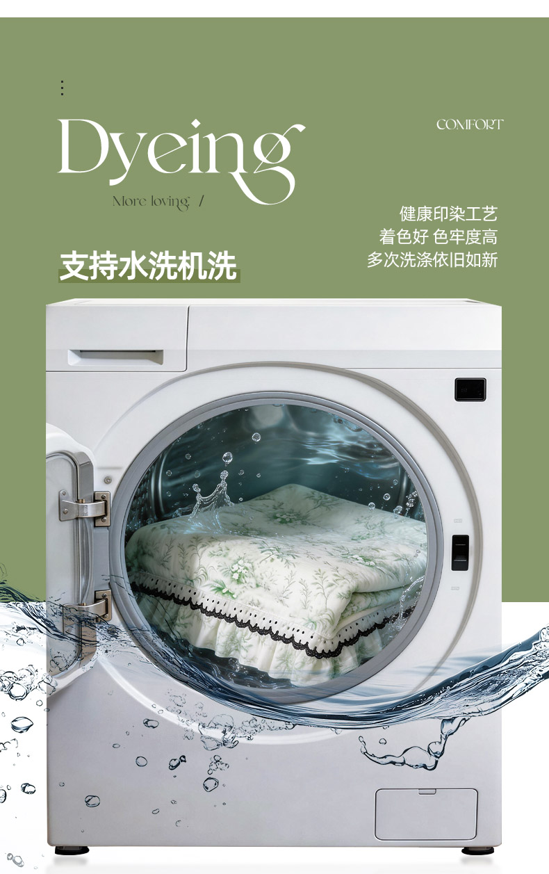 丝印良品 2024直播秋冬高克重500克床裙款泡泡四件套纯色印花七彩-碧绿,七彩-碧绿