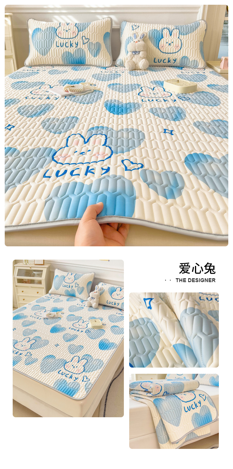 (总)丝羽坊 2026新款高密凉感丝印花乳胶凉席-床笠款,雾蓝花影,萌宠拼格,粉黛萌兔,格纹蝶影,奶白萌犬,浅蓝熊趣,糖果猫咪,彩糖点点,林间私语,薄荷甜心,爱的圈圈,春意盎然,奶绿汪仔,小白兔,小企鹅,小兔派对,星月