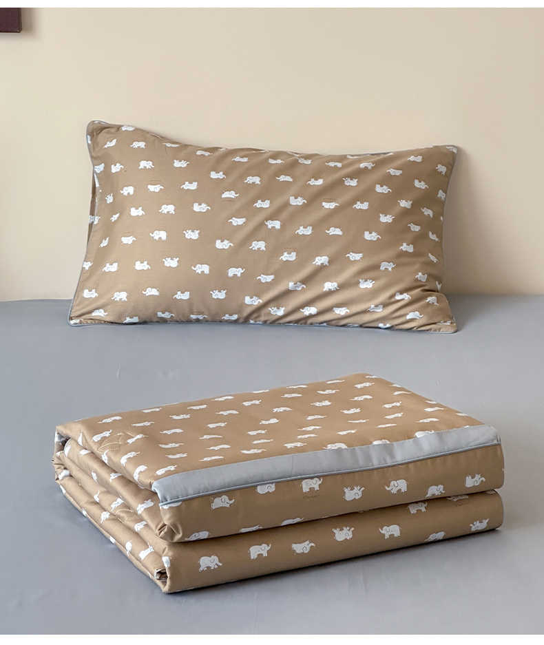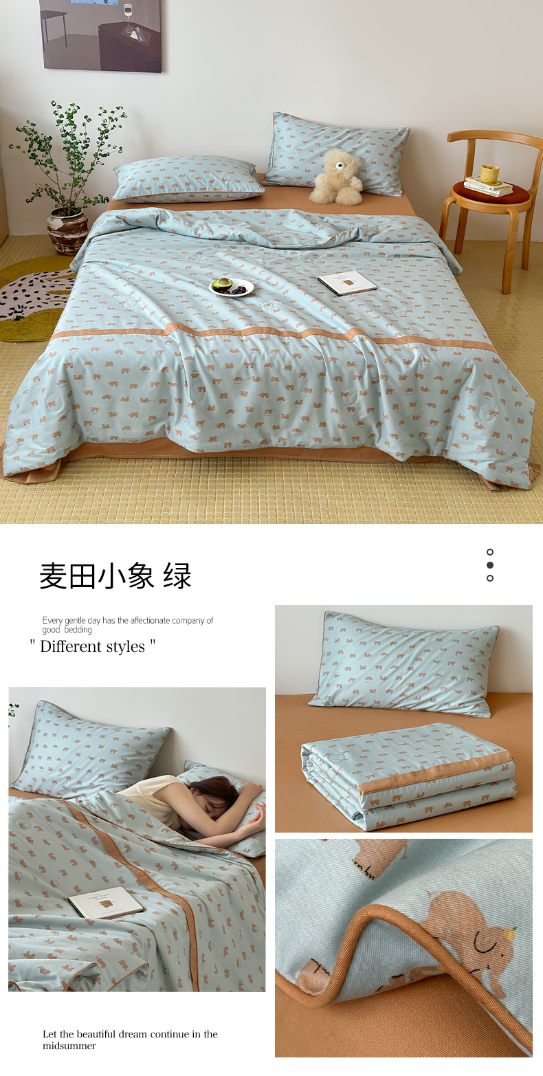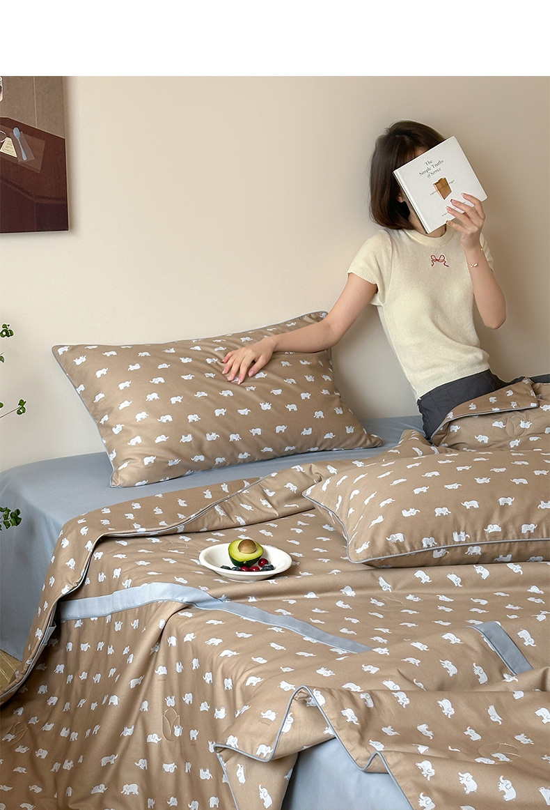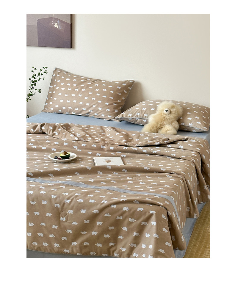 • 91家纺网 家纺一手货源 找家纺 一加一 2026新款活性印花透气工艺大豆夏被夏凉被空调被四件套-棉花叙 麦田小象 咖