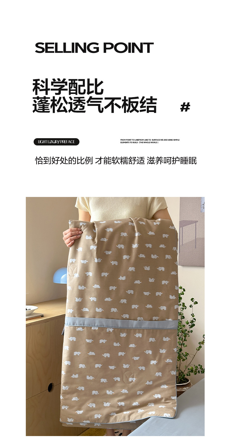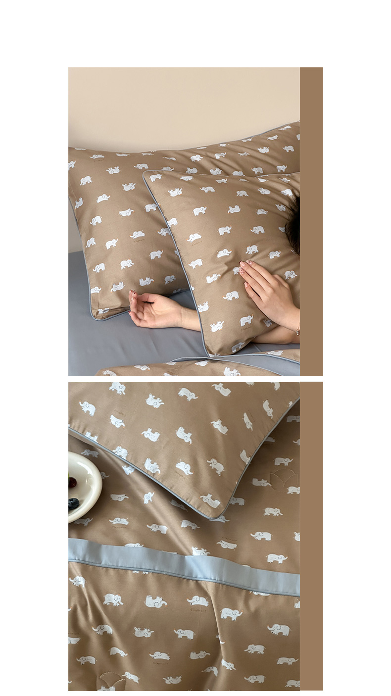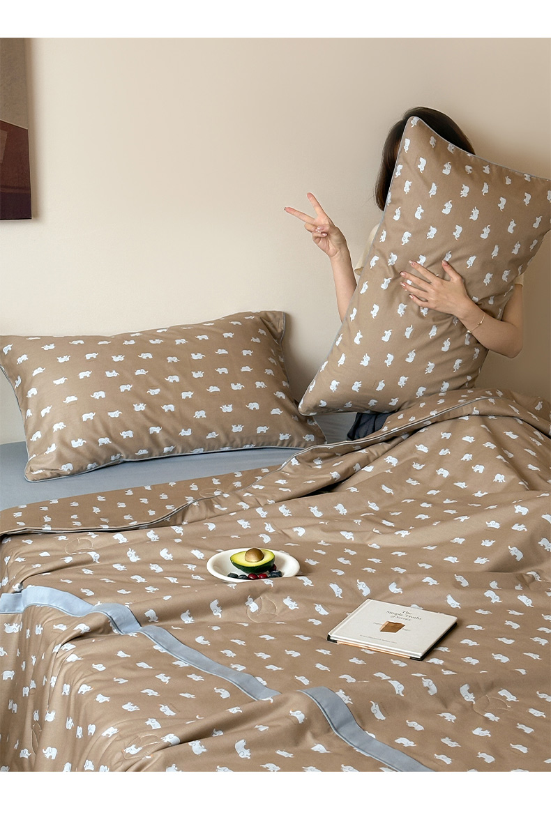 • 91家纺网 家纺一手货源 找家纺 一加一 2026新款活性印花透气工艺大豆夏被夏凉被空调被四件套-棉花叙 麦田小象 咖