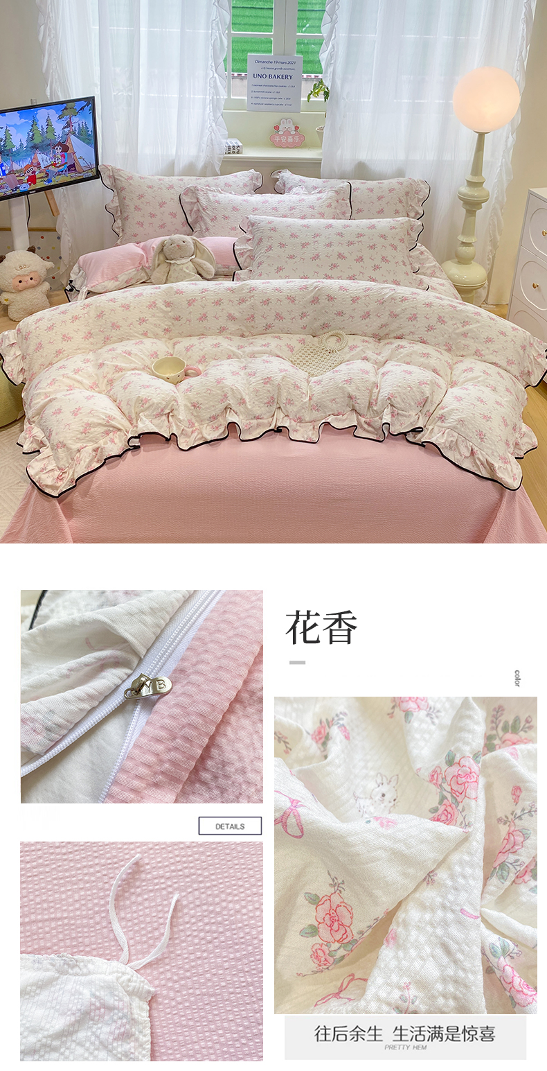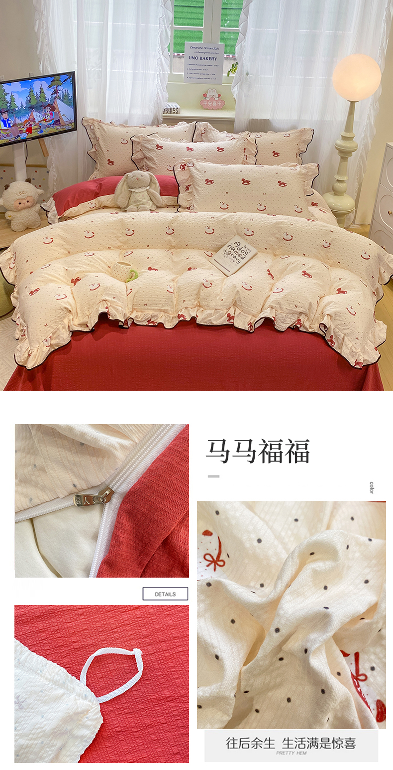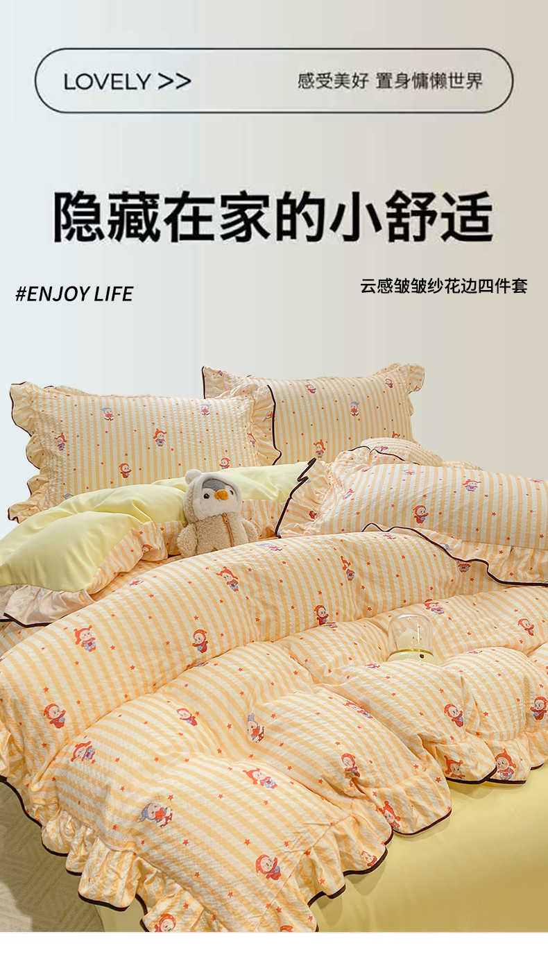 当前位置: 91家纺网 > 商品网购 > 床品套件 > 四件套 > 双层纱四件套 > 优贝家纺 2026新款云感双层纱皱皱纱花边四件套 星星人