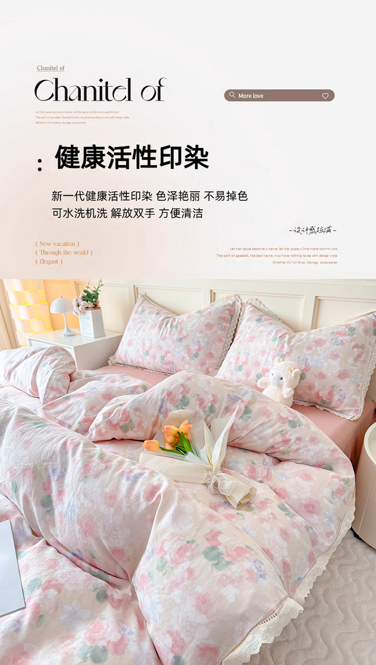 当前位置: 91家纺网 > 商品网购 > 床品套件 > 四件套 > 全棉普通四件套 > 疆东 【疆东】2026韩版蕾丝花边纯棉全棉双层纱四件套印花纯棉四件套法式赫本木耳花边全棉公主双层纱四件套 小苍兰