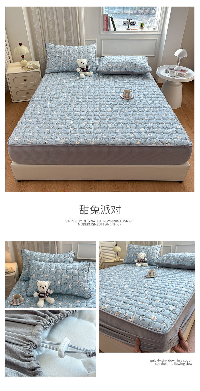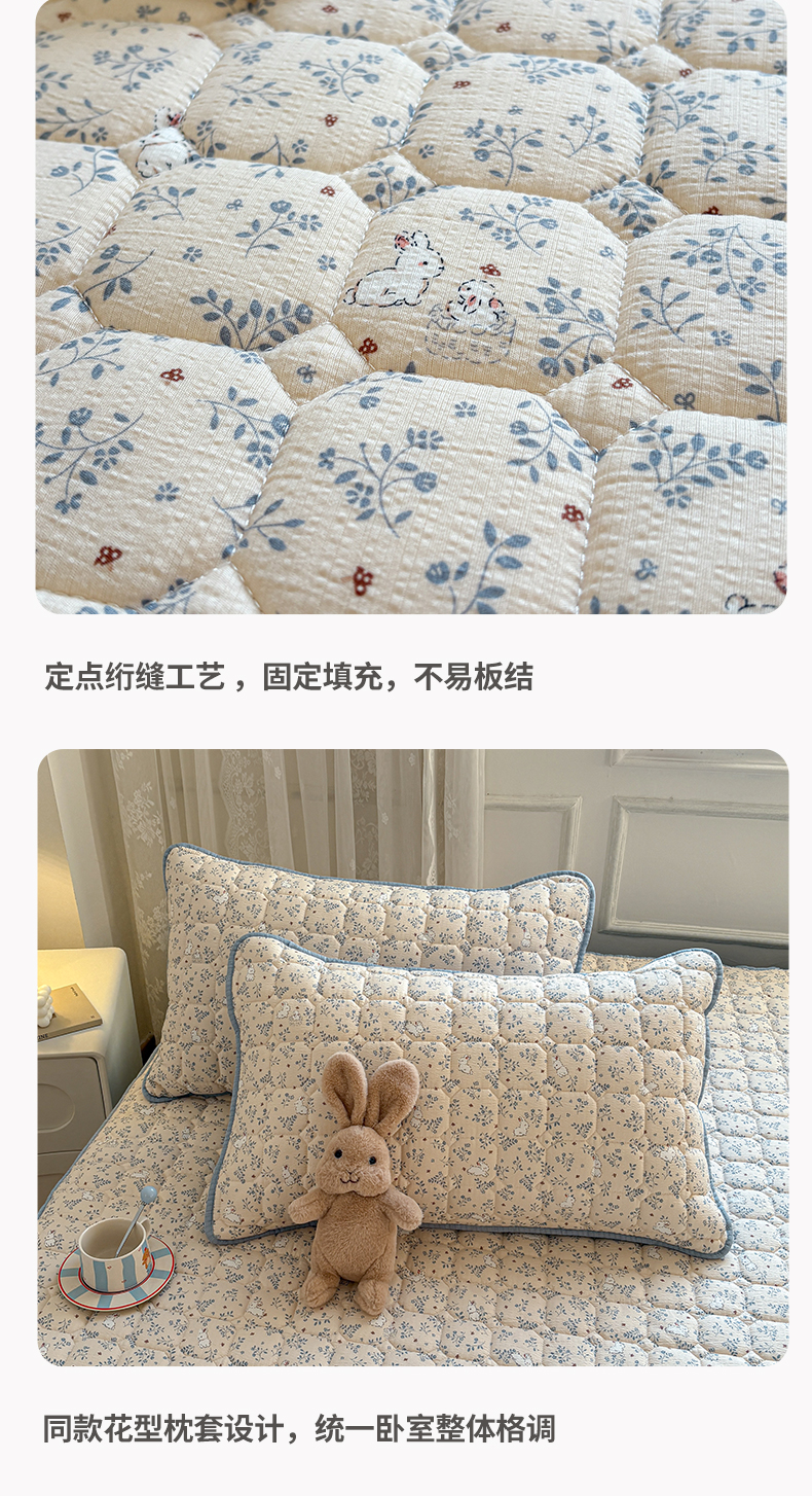 商品名称:居眠 2026新款印花皱皱纱夹棉床笠 甜兔派对